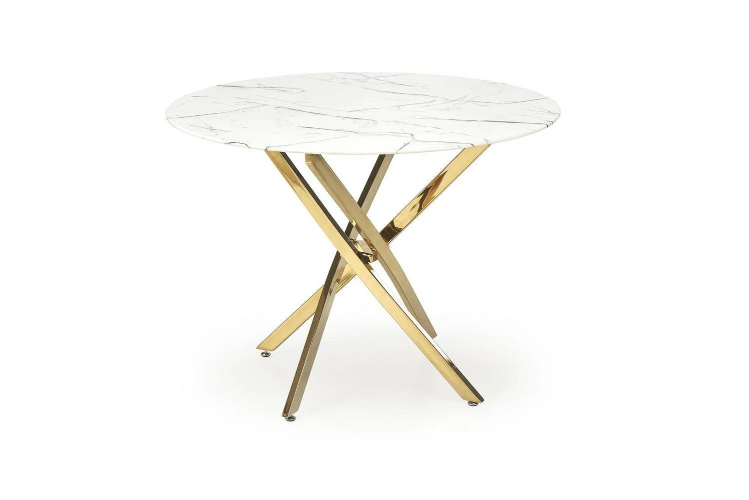 Dodaj sobie blasku dzięki stylowemu stolikowi Amber od Intesi. 4-osobowy szklany okrągły stół z białym marmurowym blatem i złotymi nogami zapewnia nowoczesny, elegancki wygląd.