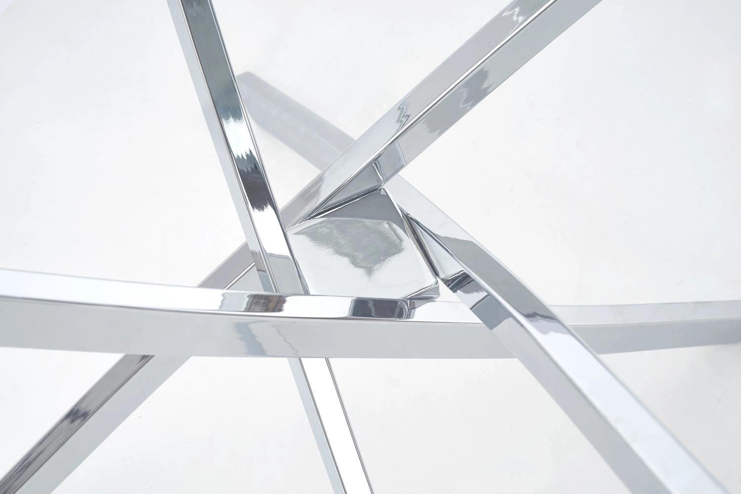 Jeśli szukasz wyjątkowego, luksusowego stołu, który ożywi Twoją przestrzeń, to Amber jest właśnie dla Ciebie. 4-osobowy stół o nowoczesnym designie jest idealny zarówno na duże przyjęcia, jak i rodzinne kolacje. Transparentny blat elegancko odbija się na chromowych metalowych nogach, tworząc przyciągający wzrok element, który z pewnością przyciągnie komplementy od każdego gościa. Okrągły stół o średnicy 100 cm oraz wysokości 73 cm oferuje mnóstwo miejsca na talerze i napoje. Dla zwiększenia luksusu i trwałości, blat został wykonany z wytrzymałego szkła, a nogi z solidnego metalu. Dzięki stolikowi Amber możesz wnieść powiew wyrafinowania do każdej przestrzeni!