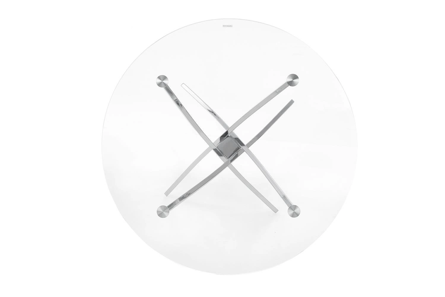 Dodaj sobie blasku dzięki stylowemu stolikowi Amber od Intesi. 4-osobowy szklany okrągły stół z transparentnym blatem i nogami w kolorze chromu zapewnia nowoczesny, elegancki wygląd.