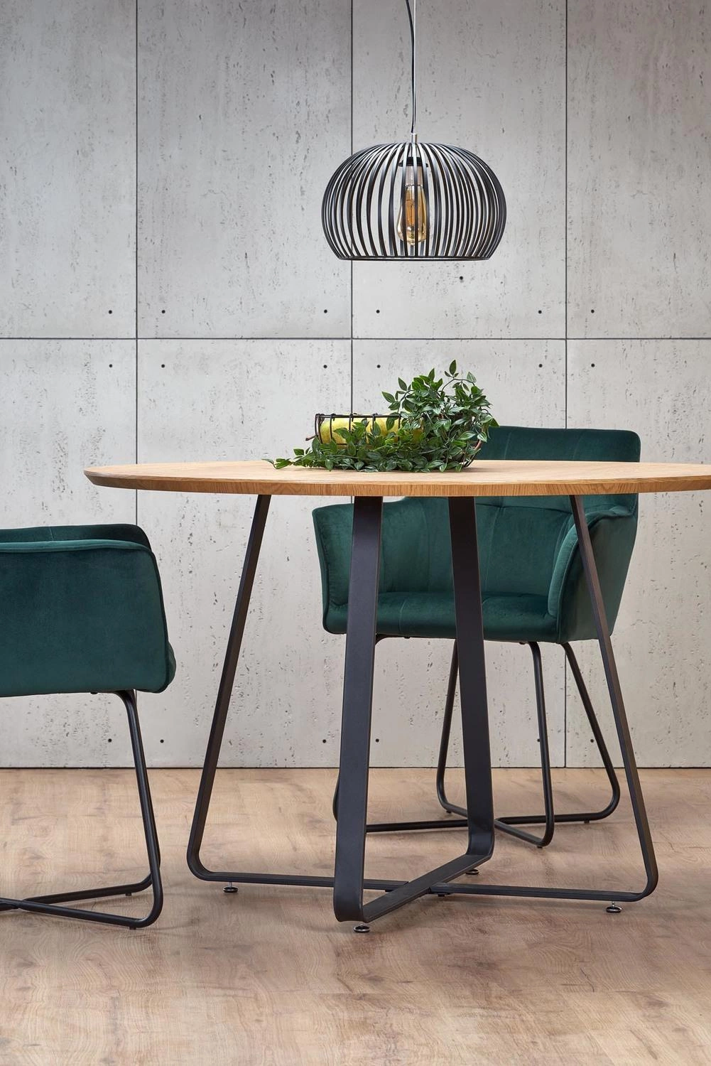Ten nowoczesny stół to idealne rozwiązanie dla każdego, kto szuka funkcjonalnego i stylowego mebla do swojego domu. Został wykonany z wysokiej jakości MDF i stali malowanej proszkowo, co gwarantuje trwałość i wytrzymałość przez długi czas. Jego okrągły kształt sprawia, że jest idealnym rozwiązaniem dla rodzinnych posiłków lub spotkań ze znajomymi.