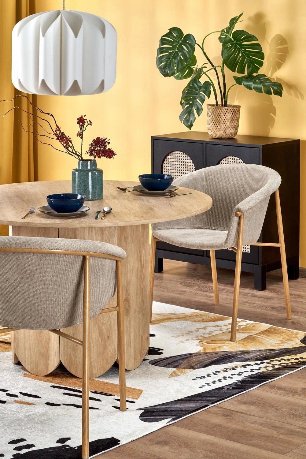 Stół Puro 2 został wykonany z wysokiej jakości MDF-u, który zapewnia trwałość i solidność konstrukcji. Stelaż z jedną nogą w ciekawej, falistej formie u dołu dodaje meblowi oryginalności i nowoczesności. Natomiast blat w kolorze naturalnego dębu nadaje wnętrzu przyjemnej atmosfery i harmonizuje z różnymi stylami wystroju, zwłaszcza skandynawskim. Stół Puro 2 nie tylko prezentuje się estetycznie, ale także jest praktyczny w użytkowaniu. MDF to materiał łatwy do utrzymania w czystości - wystarczy jedno przetarcie, aby usunąć zabrudzenia i zachować jego pierwotny wygląd. To wygodne rozwiązanie dla codziennego użytkowania. Waga stołu wynosząca 100 kg gwarantuje jego stabilność i solidność.