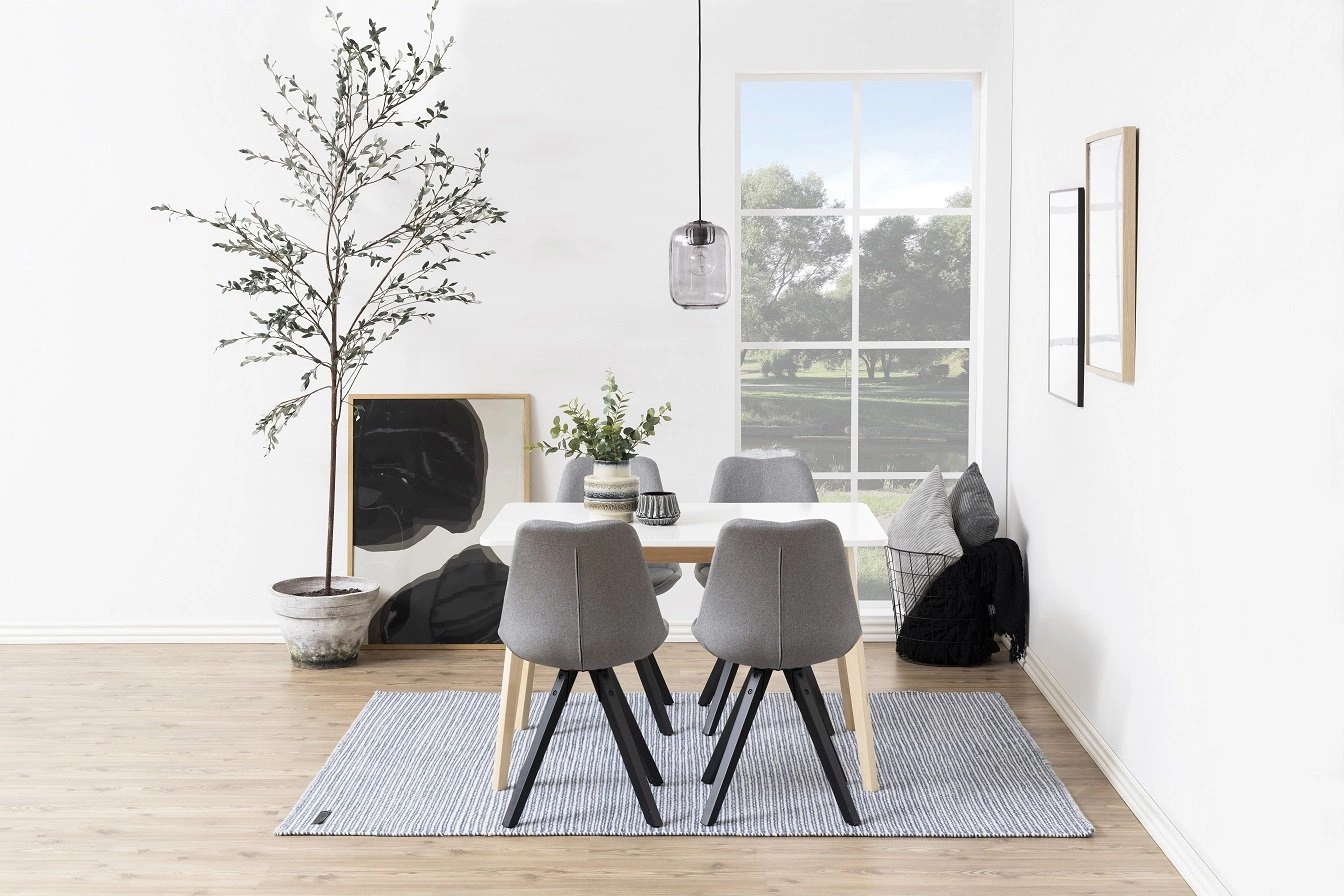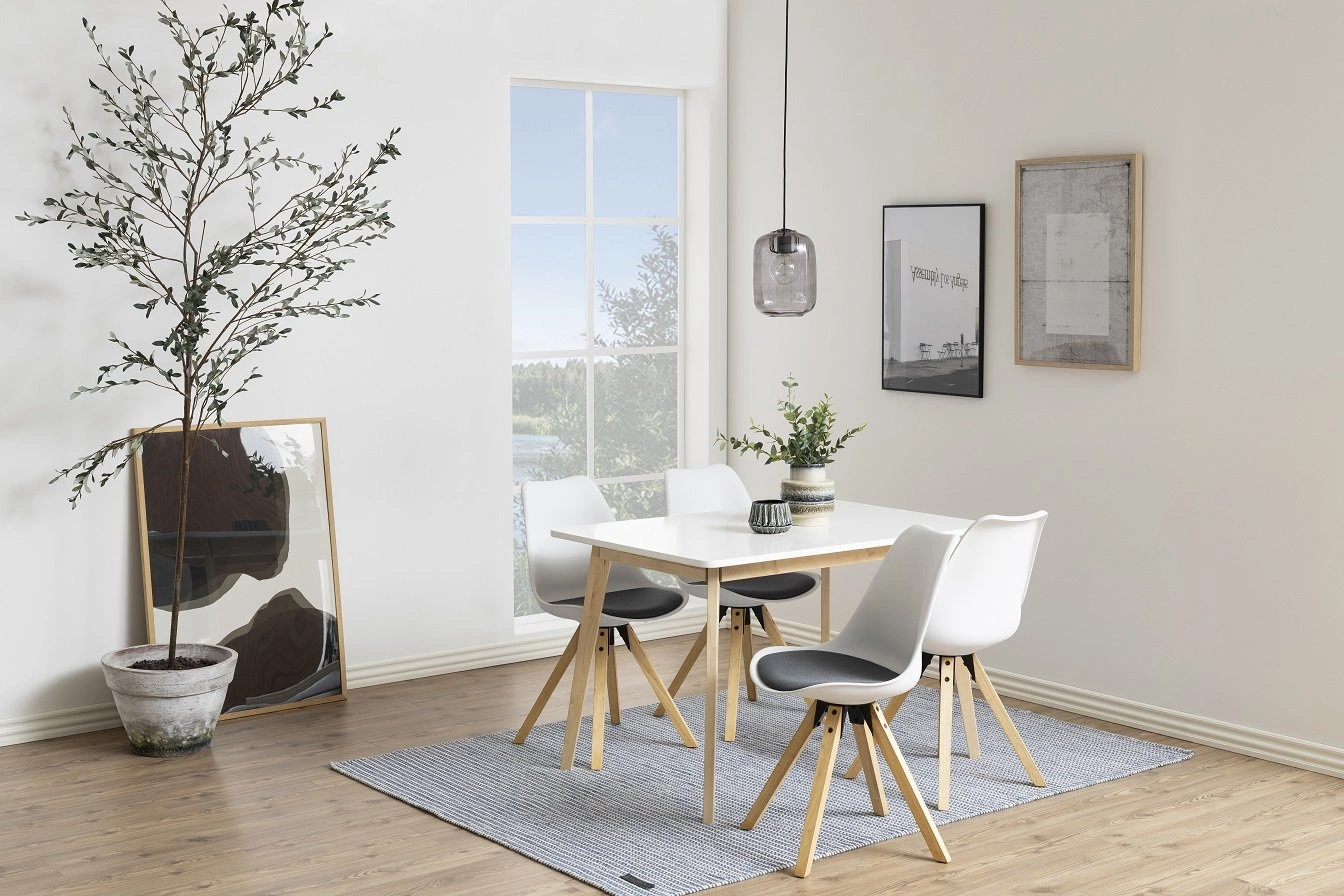 Prostokątny stół Raven, utrzymany w stylu skandynawskim, stanowi doskonałe połączenie nowoczesności z naturalnym pięknem drewna brzozowego. Wykończony bezbarwnym lakierem, który podkreśla naturalny odcień drewna, stół ten stanie się efektownym elementem każdego wnętrza. Biel blatów wykonanych z płyty MDF idealnie kontrastuje z ciepłym odcieniem drewna, dodając meblowi lekkości i świeżości.