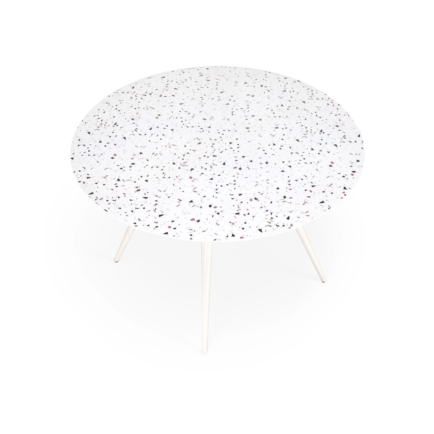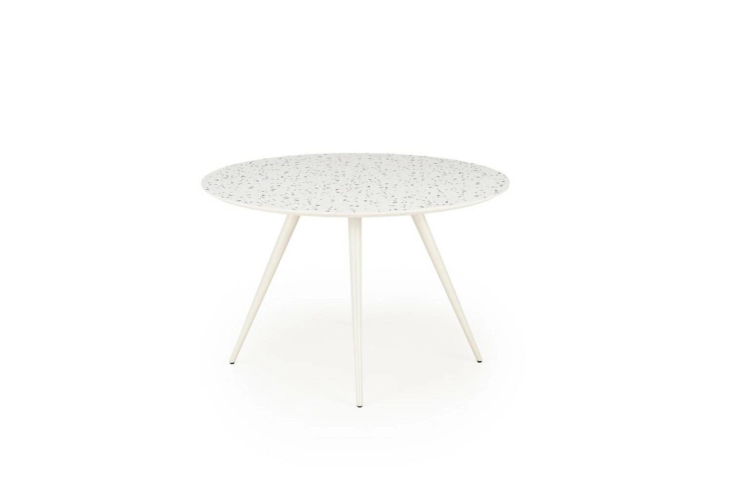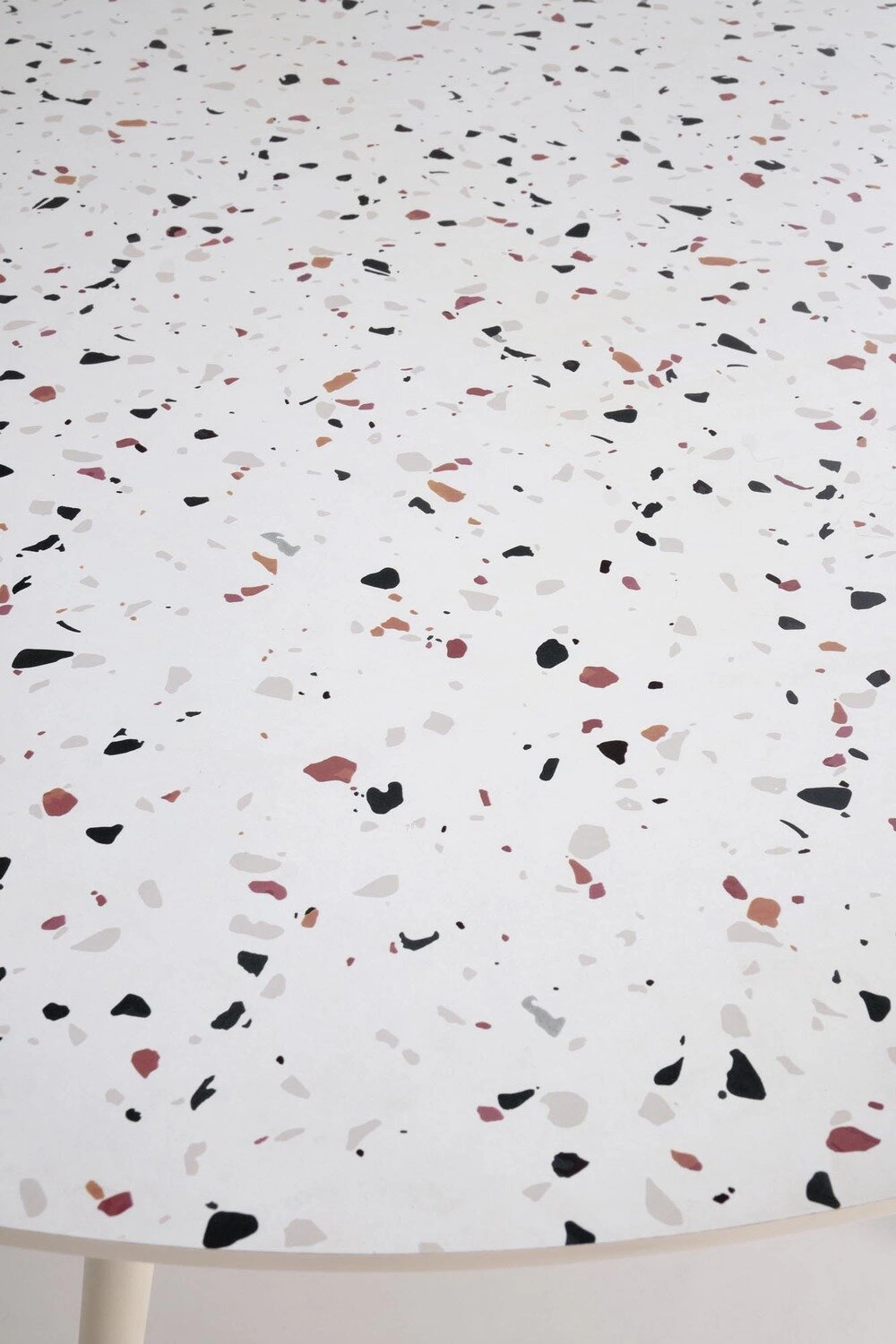 Stół Reyna to wyjątkowy mebel, który wprowadzi do Twojego wnętrza nutę nowoczesności i elegancji. Biała kolorystyka dodaje wnętrzu lekkości i świeżości, a metalowe nogi gwarantują stabilność i trwałość. Blat wykonany z płyty MDF i HPL w kolorze białego lastryko łączy w sobie funkcjonalność i estetykę, dzięki czemu stół Reyna jest nie tylko stylowy, ale także łatwy w utrzymaniu czystości. Okrągły kształt stołu sprzyja swobodnej rozmowie i tworzy przyjemną atmosferę podczas spotkań rodzinnych czy przyjęć.