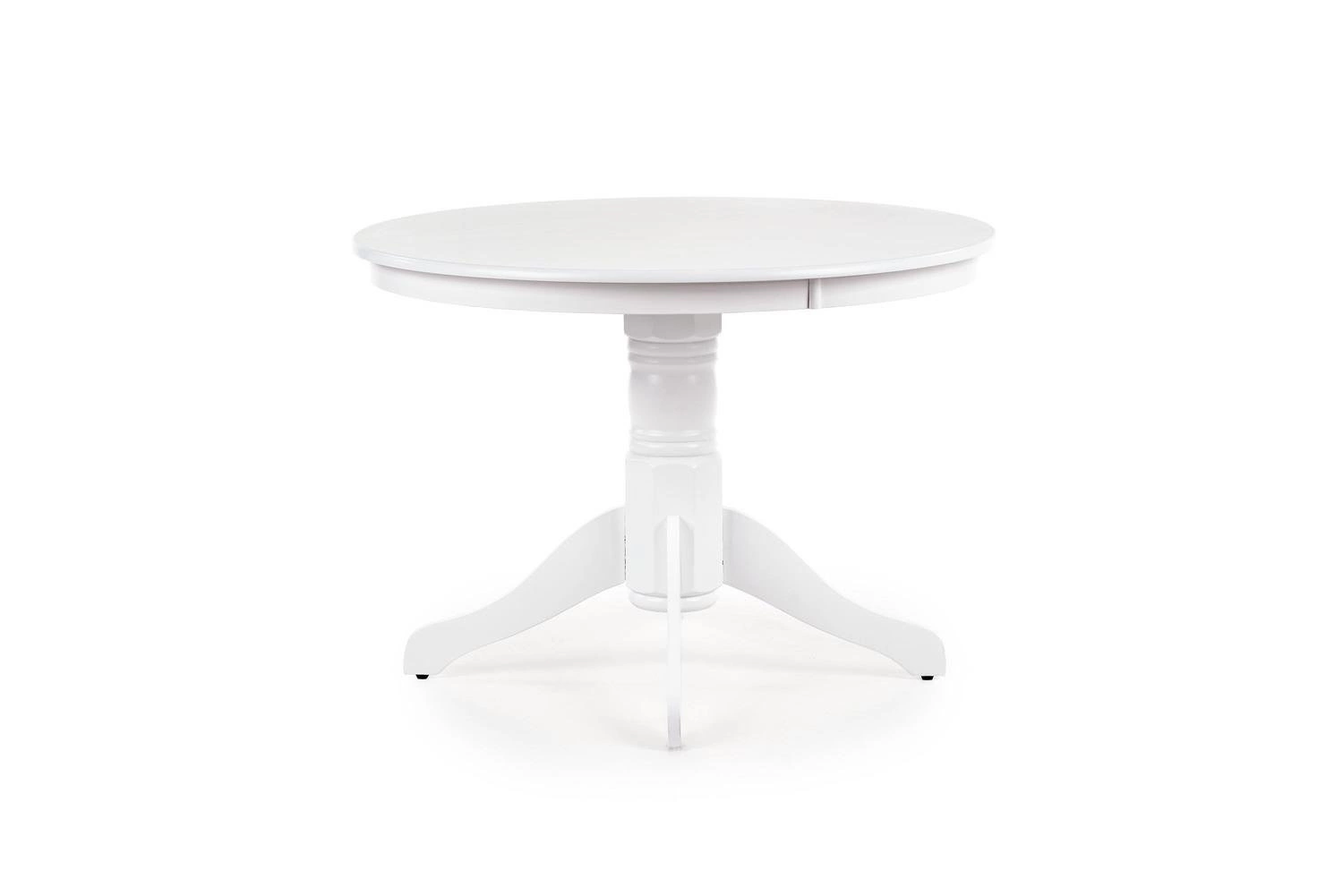 Blat wykonany jest z MDF-u lakierowanego, co zapewnia nie tylko wyjątkowy wygląd, ale również trwałość i łatwość w utrzymaniu czystości. Nogi stołu wykonane są z litego drewna kauczukowego, co gwarantuje stabilność i solidność konstrukcji. Stół jest w kolorze białym, co dodaje mu elegancji i sprawia, że pasuje do każdego wnętrza. Jego wysokość wynosi 75 cm, co zapewnia wygodne siedzenie przy stole.