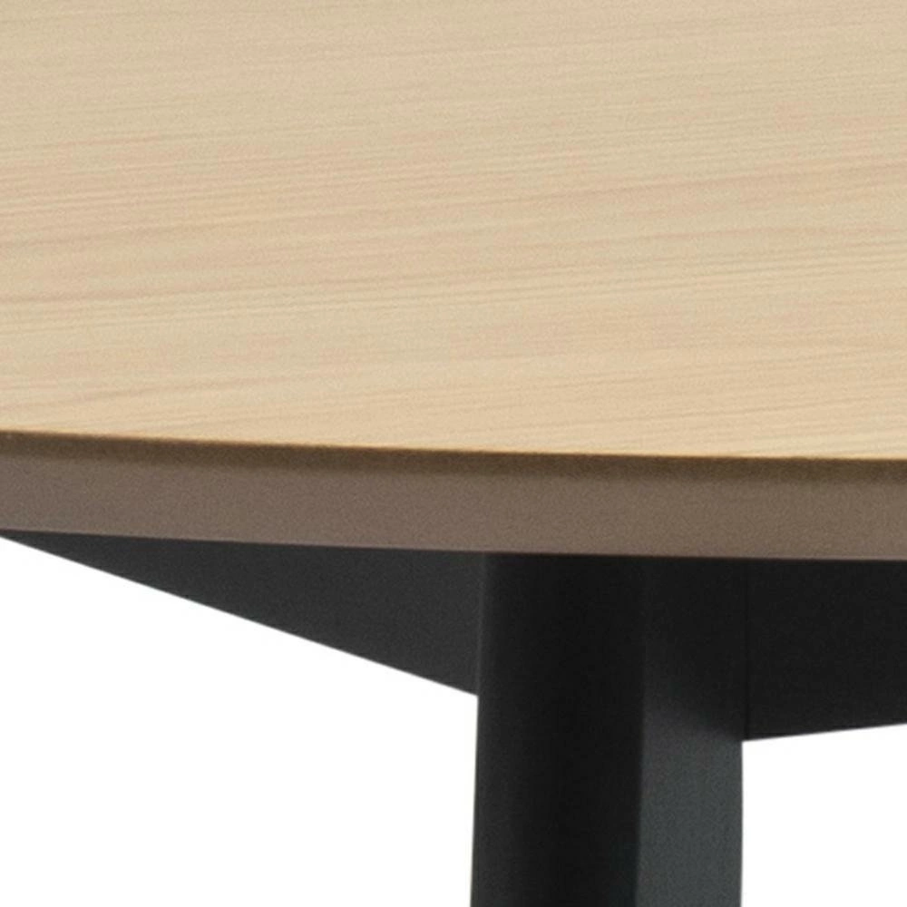 Poznaj przykład minimalistycznego, nowoczesnego wzornictwa o prostej i funkcjonalnej formie. Stół Roxby z okrągłym blatem to wysokiej jakości mebel, który posłuży na lata. Blat wykonany został z płyty drewnopodobnej w okleinie dębowej, która została subtelnie wykończona na krawędziach. Taki zabieg sprawił, że stół wydaje się być lekki mimo swoich gabarytów. Całość podtrzymują cztery nogi z drewna kauczukowego pomalowane na elegancki odcień czerni. Naturalny kolor drewna w połączeniu z ciemną podstawą sprawia, że Roxby będzie idealnym stołem do wnętrz modernistycznych, industrialnych jadalni i nowoczesnych salonów. Stół drewniany dla czterech osób Roxby będzie świetnie wyglądać z krzesłami o tej samej nazwie. Dzięki dostępnej kolekcji Roxby możesz stworzyć jednolite wnętrze z charakterem.