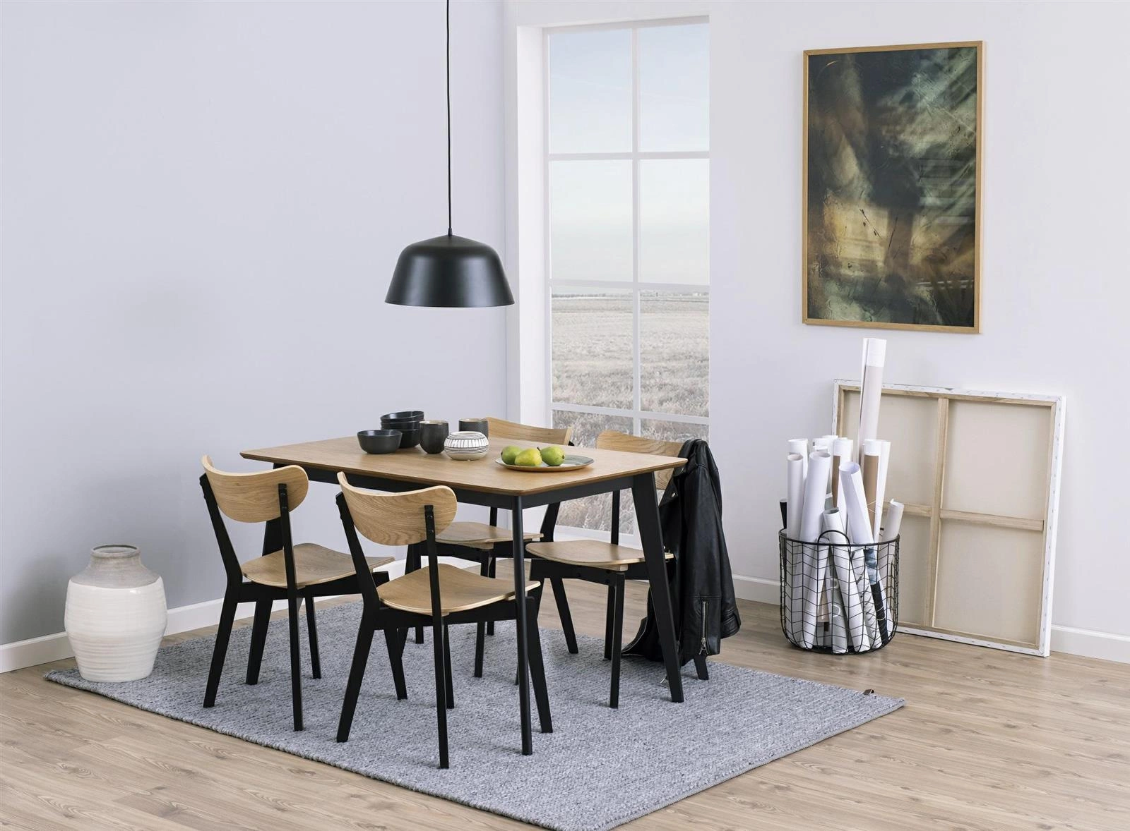 Poznaj przykład minimalistycznego, nowoczesnego wzornictwa o prostej i funkcjonalnej formie. Stół Roxby z prostokątnym blatem to wysokiej jakości mebel, który posłuży na lata. Blat wykonany został z płyty drewnopodobnej w okleinie dębowej, która została subtelnie wykończona na krawędziach. Taki zabieg sprawił, że stół wydaje się być lekki mimo swoich gabarytów. Całość podtrzymują cztery nogi z drewna kauczukowego pomalowane na elegancki odcień czerni. Naturalny kolor drewna w połączeniu z ciemną podstawą sprawia, że Roxby będzie idealnym stołem do wnętrz modernistycznych, industrialnych jadalni i nowoczesnych salonów. Stół drewniany dla czterech osób Roxby będzie świetnie wyglądać z krzesłami o tej samej nazwie. Dzięki dostępnej kolekcji Roxby możesz stworzyć jednolite wnętrze z charakterem.