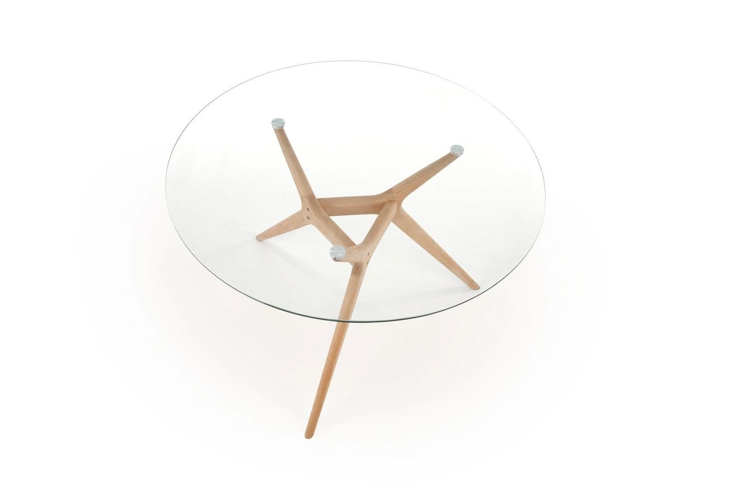 Blat stołu wykonany jest ze szkła, co nadaje mu lekkości, a jednocześnie umożliwia podziwianie eleganckiej konstrukcji mebla. Natomiast nogi wykonane są z litego drewna dębowego w naturalnym kolorze, co dodaje mu ciepła, naturalności i klasy. Stół Sharone waży 38 kg, co świadczy o solidnej konstrukcji i trwałości. Jednak to podstawa stołu zasługuje na szczególną uwagę. Jej designerski wygląd wyróżnia się na tle innych mebli, przyciągając wzrok i nadając meblowi unikalnego charakteru. Dodatkowym atutem Sharone jest jego łatwość w utrzymaniu czystości. Blat ze szkła jest prosty do wyczyszczenia, a drewno lite dębowe można łatwo pielęgnować i zachować jego naturalny blask.
