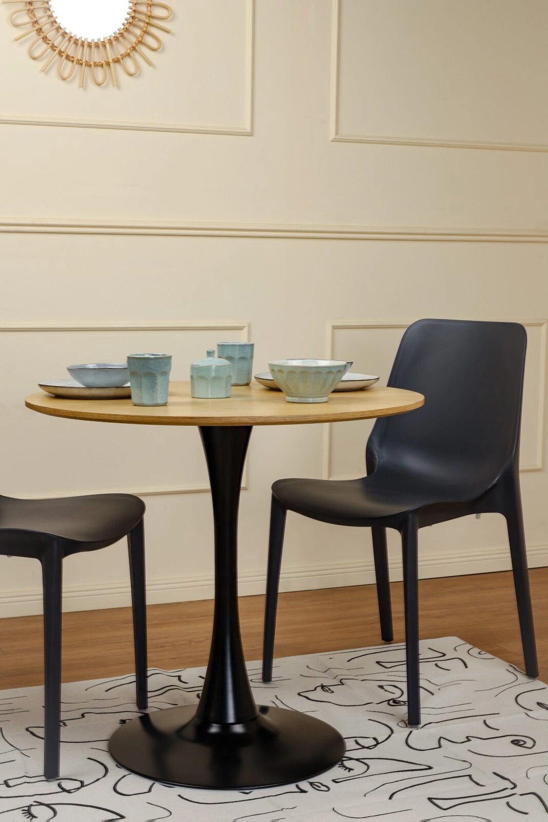 Stół Simplet Skinny z okrągłym blatem to doskonałe połączenie nowoczesności, elegancji i funkcjonalności. Jego innowacyjny design z centralnie umieszczoną nogą w kształcie trąbki, malowaną proszkowo, czyni go idealnym wyborem zarówno do małego mieszkania, jak i stylowej restauracji. Jedna noga, umieszczona centralnie pod blatem, to uniwersalne rozwiązanie, które pozwala na swobodne rozmieszczenie krzeseł bez obawy o kolizje z tradycyjnymi nogami stołu. Dzięki temu stół Simplet Skinny jest niezwykle praktyczny i wszechstronny.
