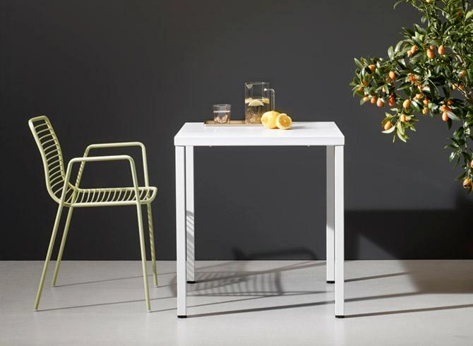 Stół Summer to doskonały przykład minimalistycznego designu, który zachwyca swoją prostotą i funkcjonalnością. Wykonany w całości z metalu malowanego proszkowo, stół nie tylko prezentuje się stylowo, ale również jest niezwykle praktyczny.