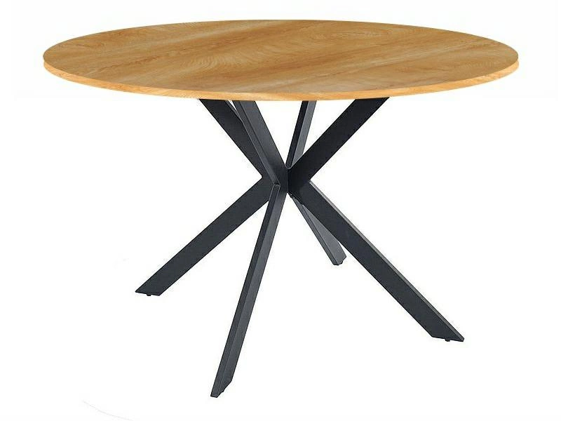 Stół Talizman 90cm dąb/czarny Stół Talizman o średnicy 90 cm to wyjątkowy mebel, który łączy w sobie funkcjonalność i designerski styl loftowy. Jego czarny, metalowy stelaż z podstawą w kształcie X nadaje stołowi solidności, tworząc zarazem harmonijny kontrast z okrągłym blatem, wykonanym z płyty MDF i melaminy. Idealny do przestrzeni jadalnianych lub salonu, to nie tylko miejsce, gdzie spożywasz posiłki, ale także designerski akcent, który przyciąga wzrok i nadaje wnętrzu nowoczesnego charakteru. Mebel jest niezwykle solidny, co sprawia, że stanowi stabilną i trwałą bazę dla różnorodnych spotkań przy stole. MDF i metalowe nogi sprawiają, że stół nie tylko prezentuje się stylowo, ale także jest niezwykle trwały i wytrzymały. To mebel, który posłuży Ci na lata, zachowując swój designerski urok. Przygotuj się na mądry wybór! Czarny stelaż w formie podstawy X w kontraście z okrągłym blatem. Idealny do przestrzeni jadalnianych lub salonu, gwarantuje stabilność i trwałość. Wykonanie z MDF i metalu sprawia, że stół jest nie tylko designerski, ale również trwały i wytrzymały na lata.