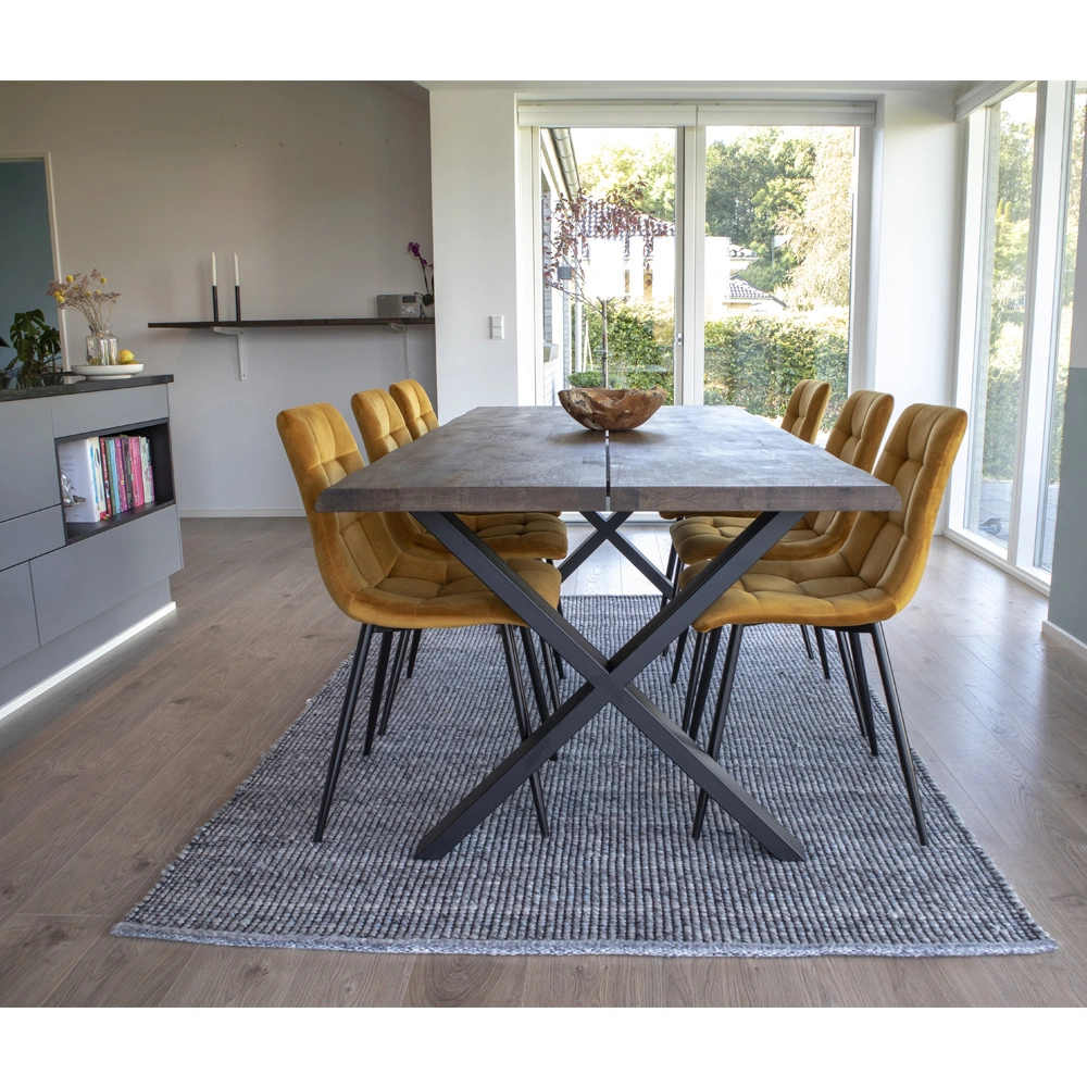 Blat stołu Toulon wykonano z dębu w szlachetnym, dymionym odcieniu, który pięknie eksponuje rysunek słojów. Olejowane wykończenie podkreśla naturalny charakter drewna i pomaga chronić powierzchnię przed codziennym użytkowaniem. Szerokość 95 cm i długość 200 cm pozwalają wygodnie nakryć stół dla rodziny i gości – bez ścisku i kompromisów.