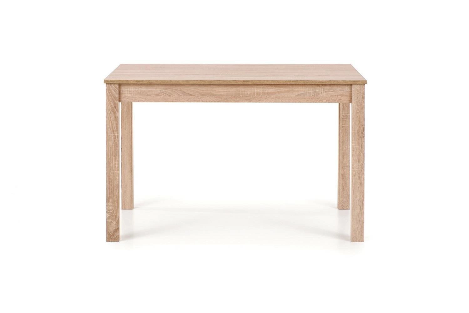 Stół ma wymiary 120 cm długości, 68 cm szerokości i 76 cm wysokości, co czyni go idealnym rozwiązaniem dla czterech osób. Dzięki takiemu rozmiarowi zapewnia wygodną przestrzeń do spożywania posiłków oraz spotkań towarzyskich. Blat stołu wykonany jest z trwałej płyty laminowanej, która jest łatwa do utrzymania w czystości i odporna na zarysowania. Obrzeża blatu zostały wykończone za pomocą technologii ABS, zapewniając im dodatkową trwałość i estetyczny wygląd. Nogi stołu wykonane są z laminowanego MDF-u, co zapewnia stabilność i solidność konstrukcji. Weryks waży około 23,8 kg, co czyni go łatwym do przenoszenia i ustawienia w wybranej przestrzeni. Jego naturalny kolor dębu sonoma nadaje mu przyjemny, ciepły wygląd, który doskonale komponuje się z różnymi stylami wnętrzarskimi.