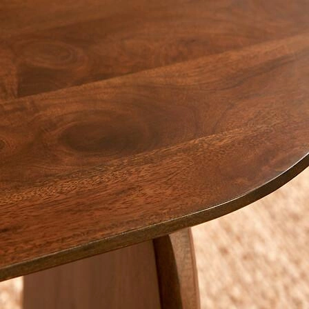 Owalny blat stołu Isana zapewnia komfortowy dostęp z każdej strony, a łagodne linie nadają meblowi lekkości. Ten drewniany stolik kawowy doskonale wpisuje się w aranżacje klasyczne, nowoczesne oraz loftowe, podkreślając wyjątkowy charakter Twojego salonu lub jadalni. Matowe wykończenie nie tylko eksponuje naturalne usłojenie drewna, ale także sprawia, że stolik kawowy jest mniej podatny na widoczność codziennych zabrudzeń – łatwo utrzymasz go w czystości, nawet przy intensywnym użytkowaniu.