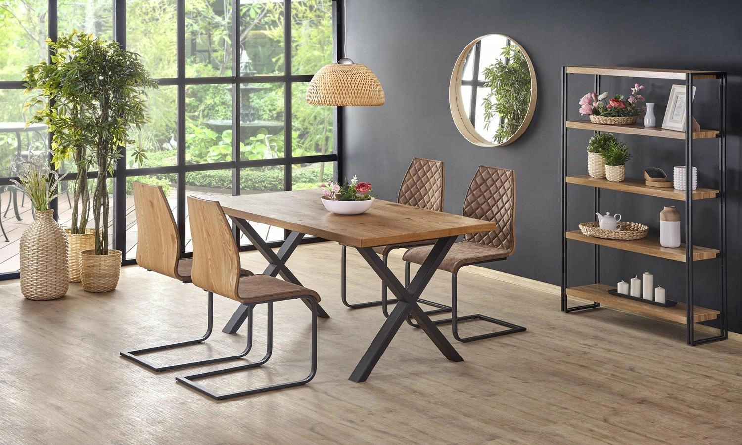 Blat wykonany został z wysokiej jakości płyty fornirowanej, która jest bardzo trwała i łatwa w utrzymaniu czystości. Na obrzeżach zastosowano drewno lite, co dodaje mu elegancji i stylu. Nogi wykonane z malowanej proszkowo stali zapewniają stabilność i wytrzymałość, a ich czarny kolor doskonale kontrastuje z jasnym dębowym blatem. Ten funkcjonalny stół to doskonała propozycja dla osób, które cenią sobie wygodę i praktyczność.