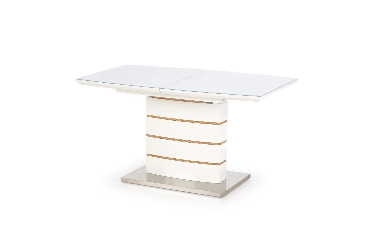 Stół został wykonany z trwałych i estetycznych materiałów, takich jak MDF lakierowany, okleina naturalna, szkło i stal nierdzewna, co gwarantuje długotrwałe użytkowanie. Dodatkowo, nowoczesny styl wykonania wprowadzi elegancki i modny akcent do każdego wnętrza. Nie musisz już się martwić, że Twój stół nie będzie odpowiedni na większe spotkania.