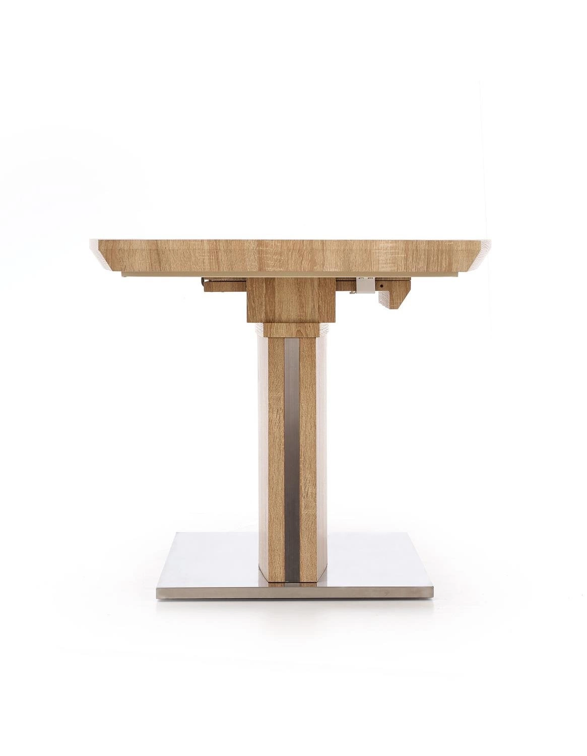 Wykonany z wysokiej jakości materiałów, takich jak MDF laminowany i stal nierdzewna, ten stół zapewni Ci trwałość i odporność na uszkodzenia. Dzięki temu, będziesz mógł cieszyć się nim przez wiele lat, bez konieczności wymiany na nowy mebel. Nowoczesny styl i elegancki kolor dąb sonoma sprawiają, że stół będzie pasował do wielu aranżacji wnętrz.