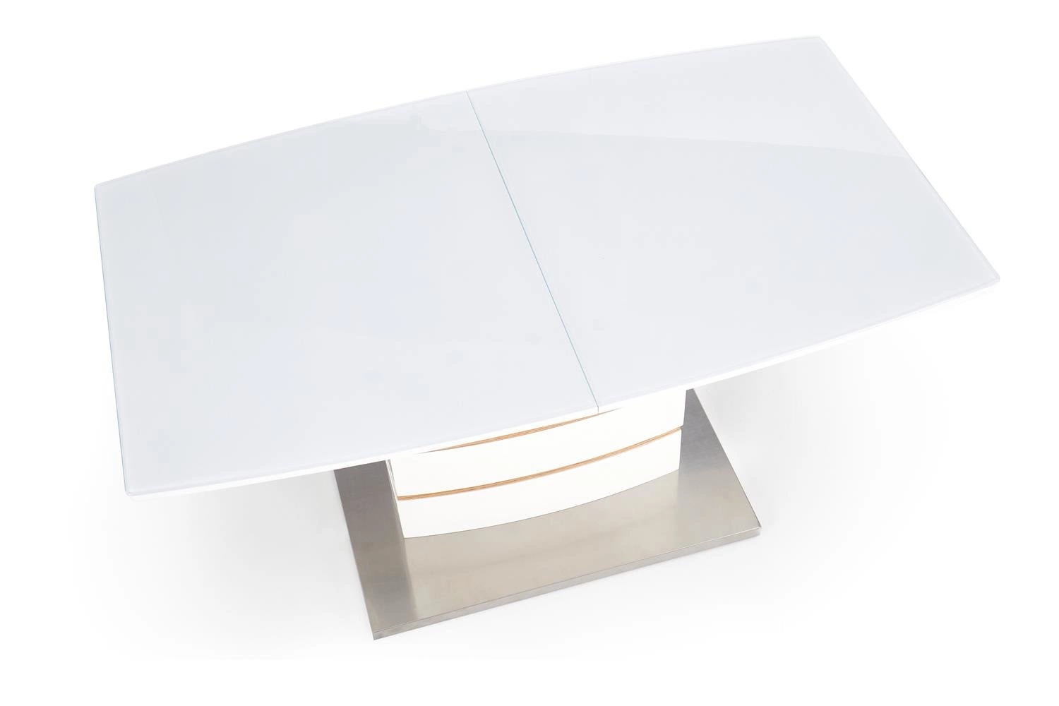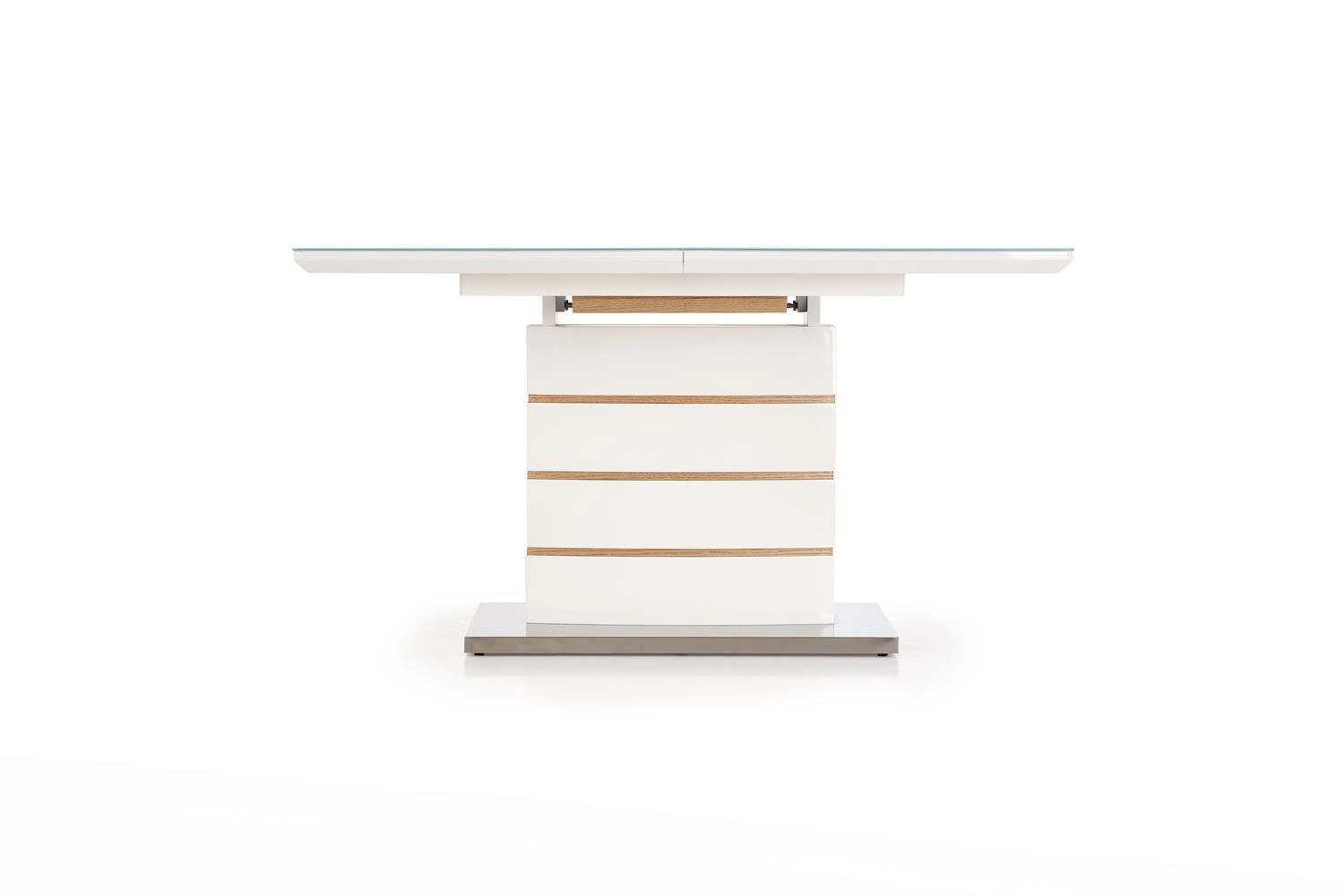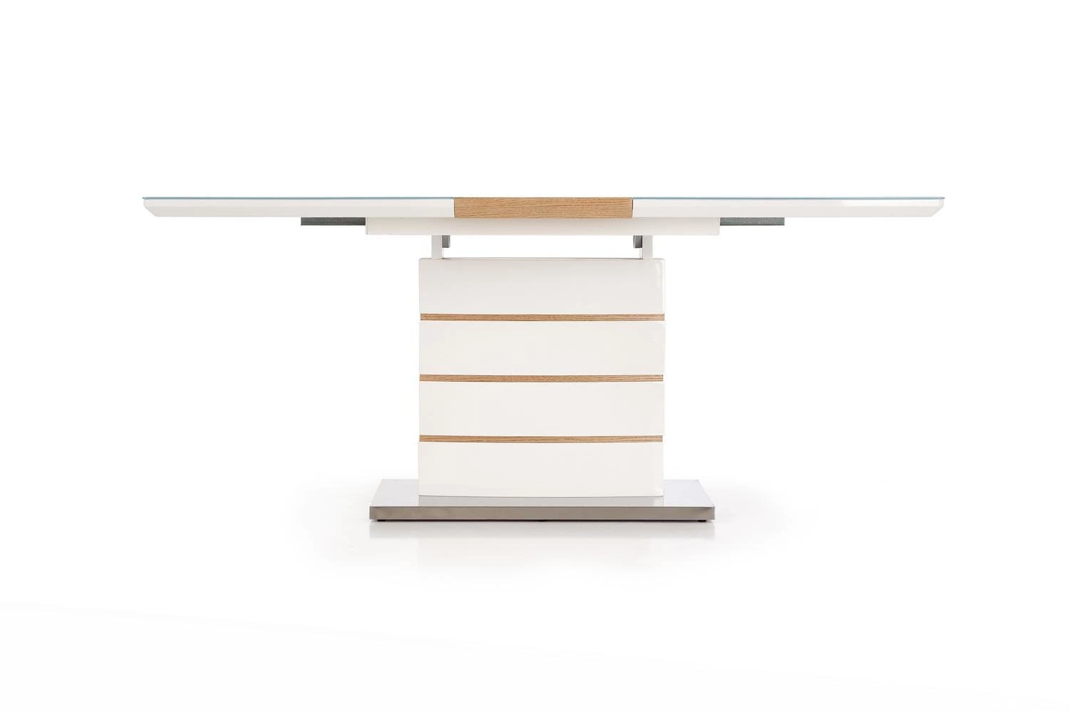 Stół został wykonany z trwałych i estetycznych materiałów, takich jak MDF lakierowany, okleina naturalna, szkło i stal nierdzewna, co gwarantuje długotrwałe użytkowanie. Dodatkowo, nowoczesny styl wykonania wprowadzi elegancki i modny akcent do każdego wnętrza. Nie musisz już się martwić, że Twój stół nie będzie odpowiedni na większe spotkania.