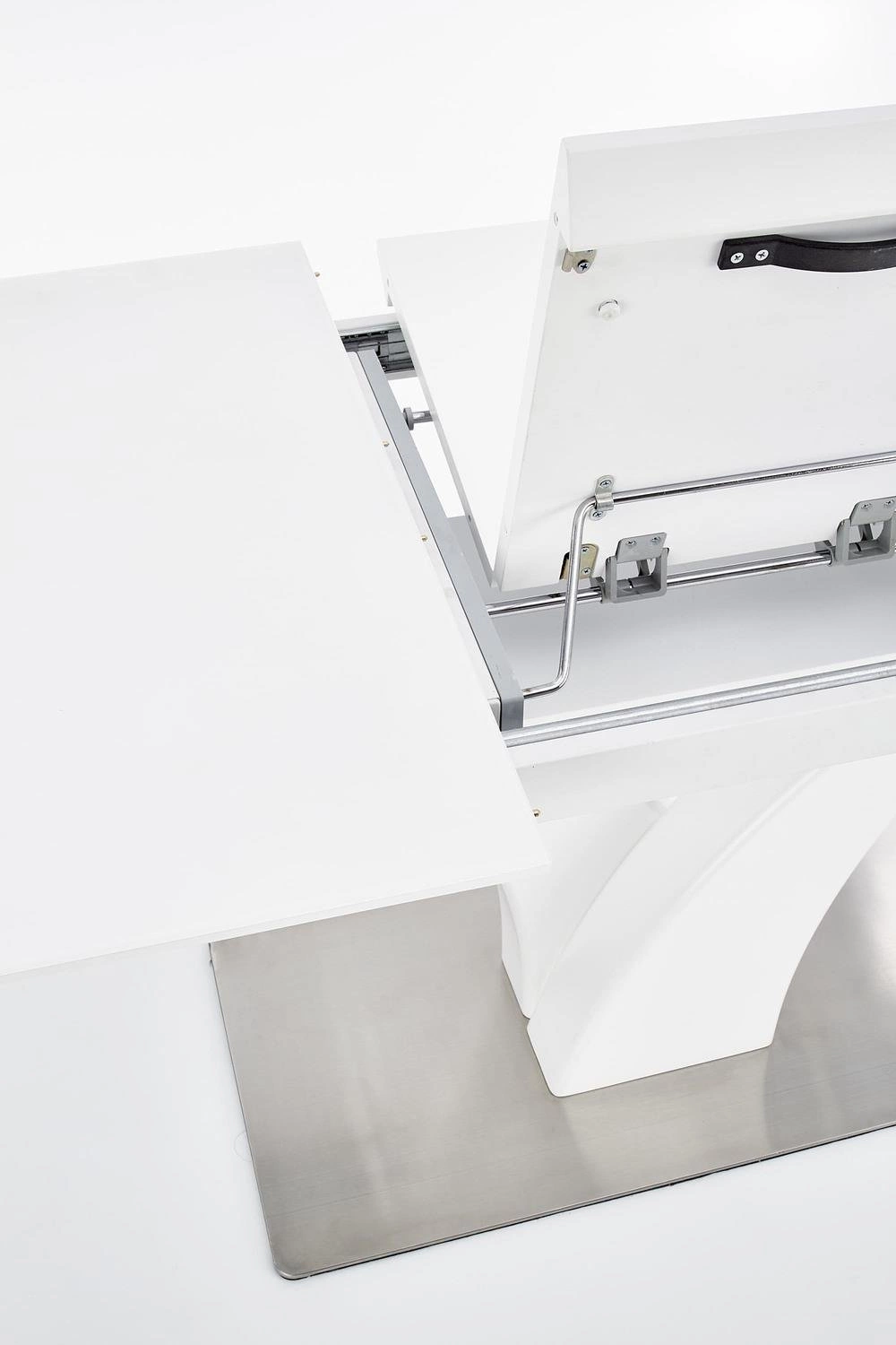 Stół w kolorze białym doskonale wpisuje się w nowoczesny i glamour styl aranżacji wnętrz, dodając mu przy tym elegancji i stylu. Rozkładany blat umożliwia zmianę jego wymiarów w zależności od potrzeb, co czyni go jeszcze bardziej funkcjonalnym. Dzięki temu możesz swobodnie dostosować go do swoich potrzeb i wymagań.