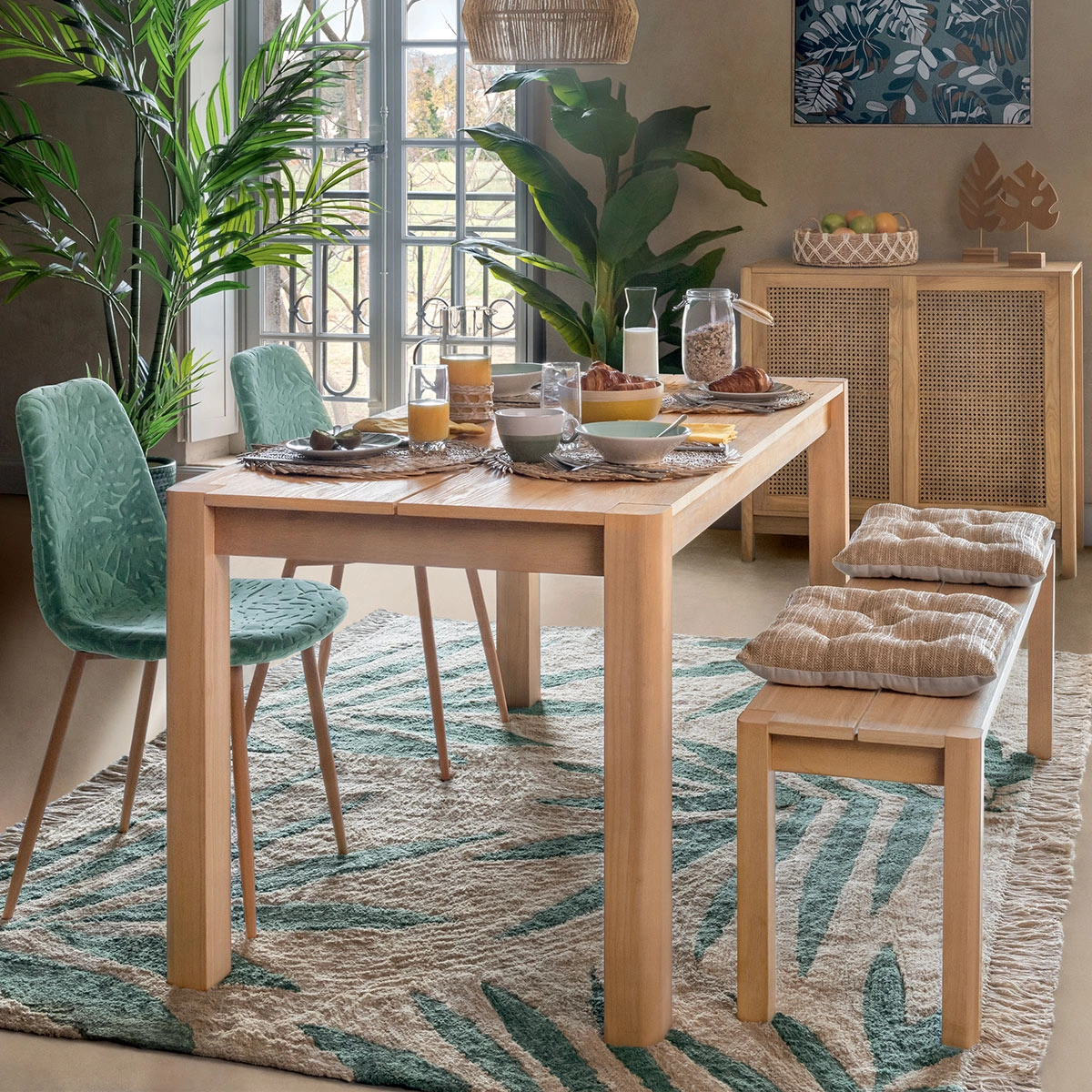 - Naturalny kolor stołu sprawia, że pasuje on do wielu stylów wnętrzarskich.