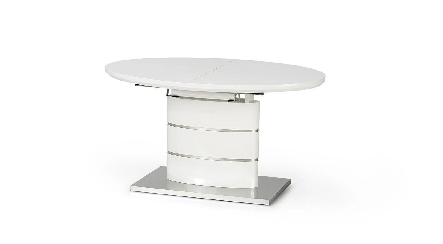 Materiały użyte do produkcji stołu - MDF lakierowany i stal nierdzewna - to gwarancja trwałości i odporności na uszkodzenia, dzięki czemu będziesz mógł cieszyć się nim przez długi czas. Styl wykonania - glamour i nowoczesny - to idealne połączenie elegancji i szyku, które doda Twojemu wnętrzu niepowtarzalnego charakteru. Owalny blat stołu oraz kolor biały to dodatkowe atuty, które sprawiają, że stół będzie doskonale prezentować się w każdym pomieszczeniu.