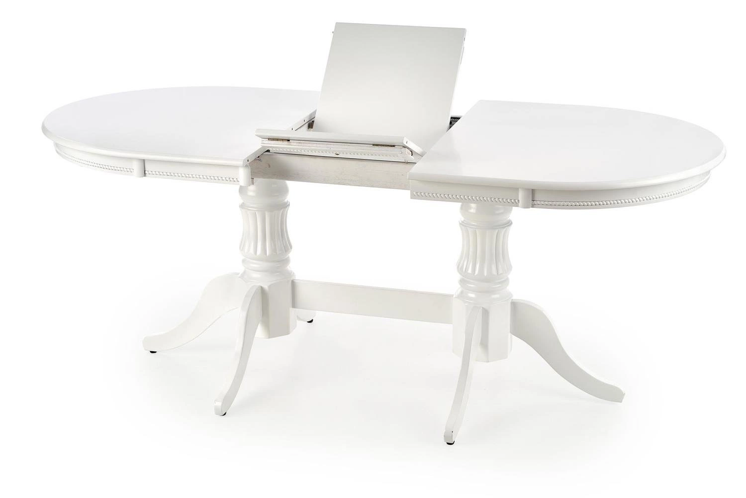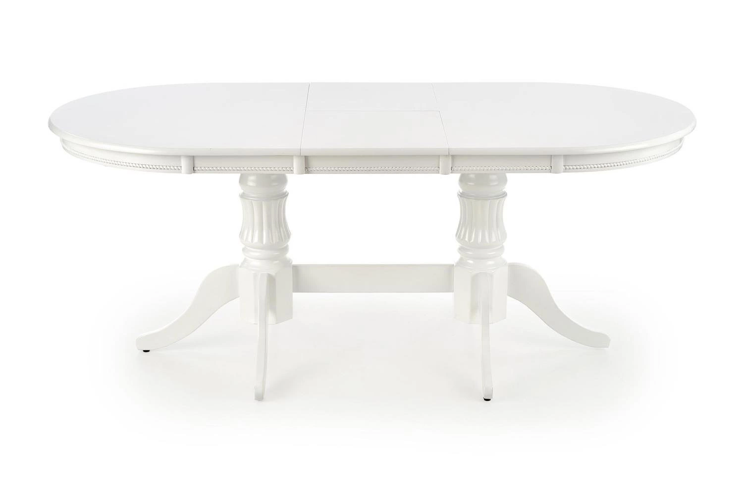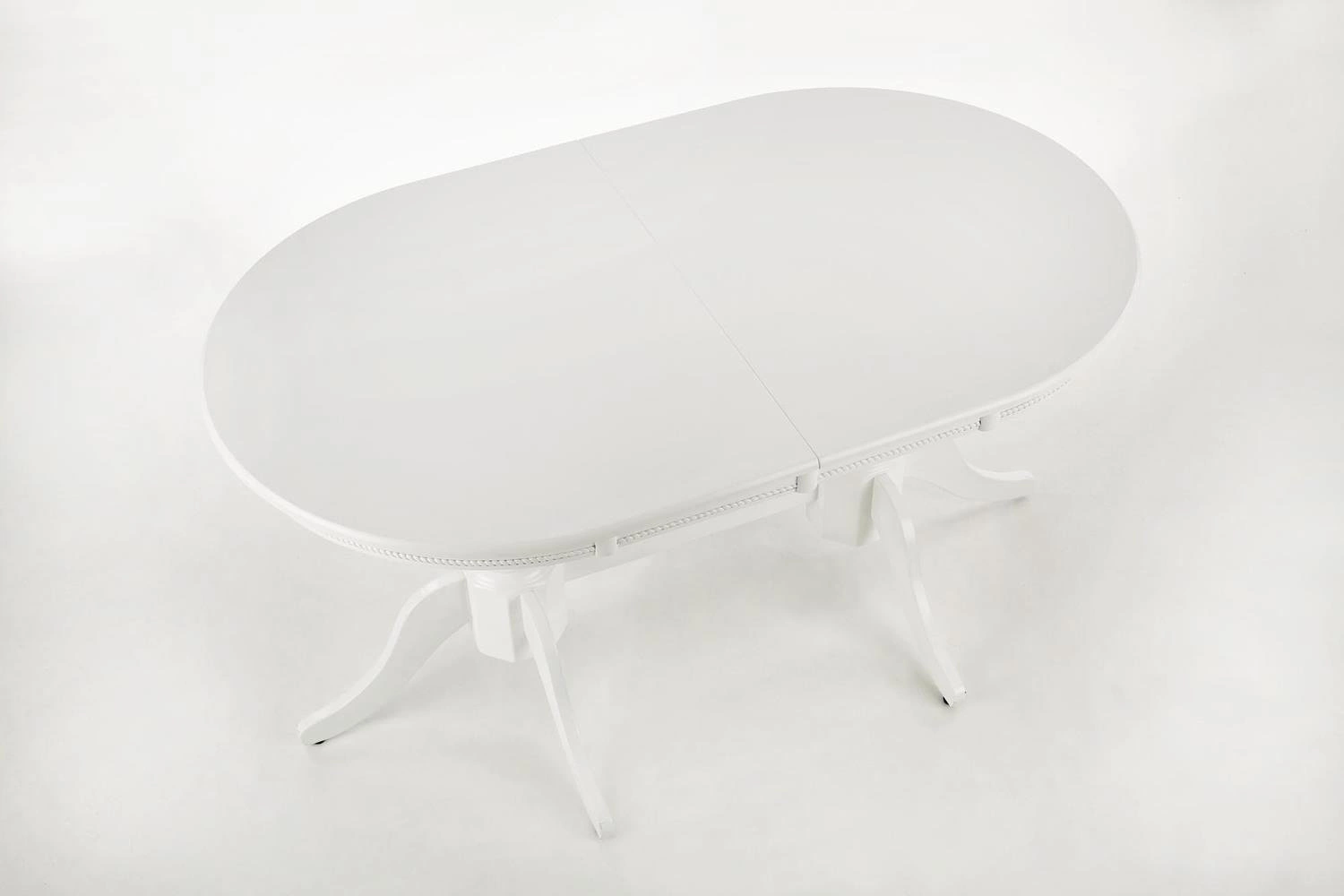 Drewniane nogi dodają mu szlachetnego wyglądu, a biały kolor sprawia, że pasuje do każdego wnętrza. Stół jest bardzo prosty w montażu i demontażu, co oznacza, że można go łatwo przenieść z jednego pomieszczenia do drugiego, w zależności od potrzeb. Jego owalny kształt zapewnia wygodne miejsca dla każdego gościa, a wysokość wynosząca 77 cm sprawia, że jest idealny dla osób o różnych wzrostach. To, co wyróżnia ten stół spośród innych, to jego rozkładana funkcjonalność.