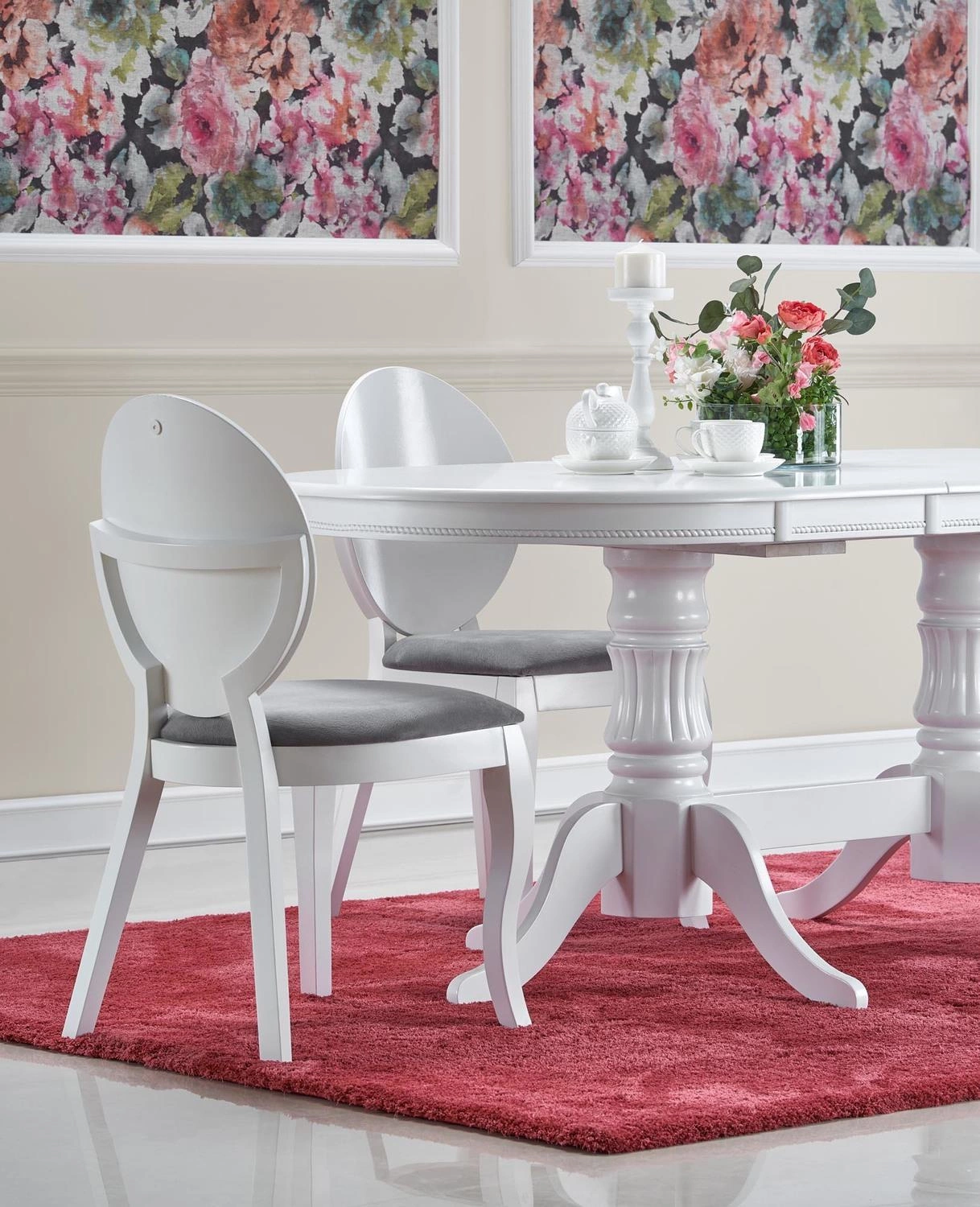 Ten piękny, klasyczny stół to idealne rozwiązanie dla rodzin i gości, którzy cenią sobie elegancję i wygodę. Dzięki swojemu rozkładanemu blatu stół może pomieścić zarówno 6, jak i 8 osób, co czyni go idealnym wyborem na każdą okazję. Blat stołu wykonany jest z lakierowanego MDF-u, co zapewnia trwałość i łatwość w utrzymaniu czystości.