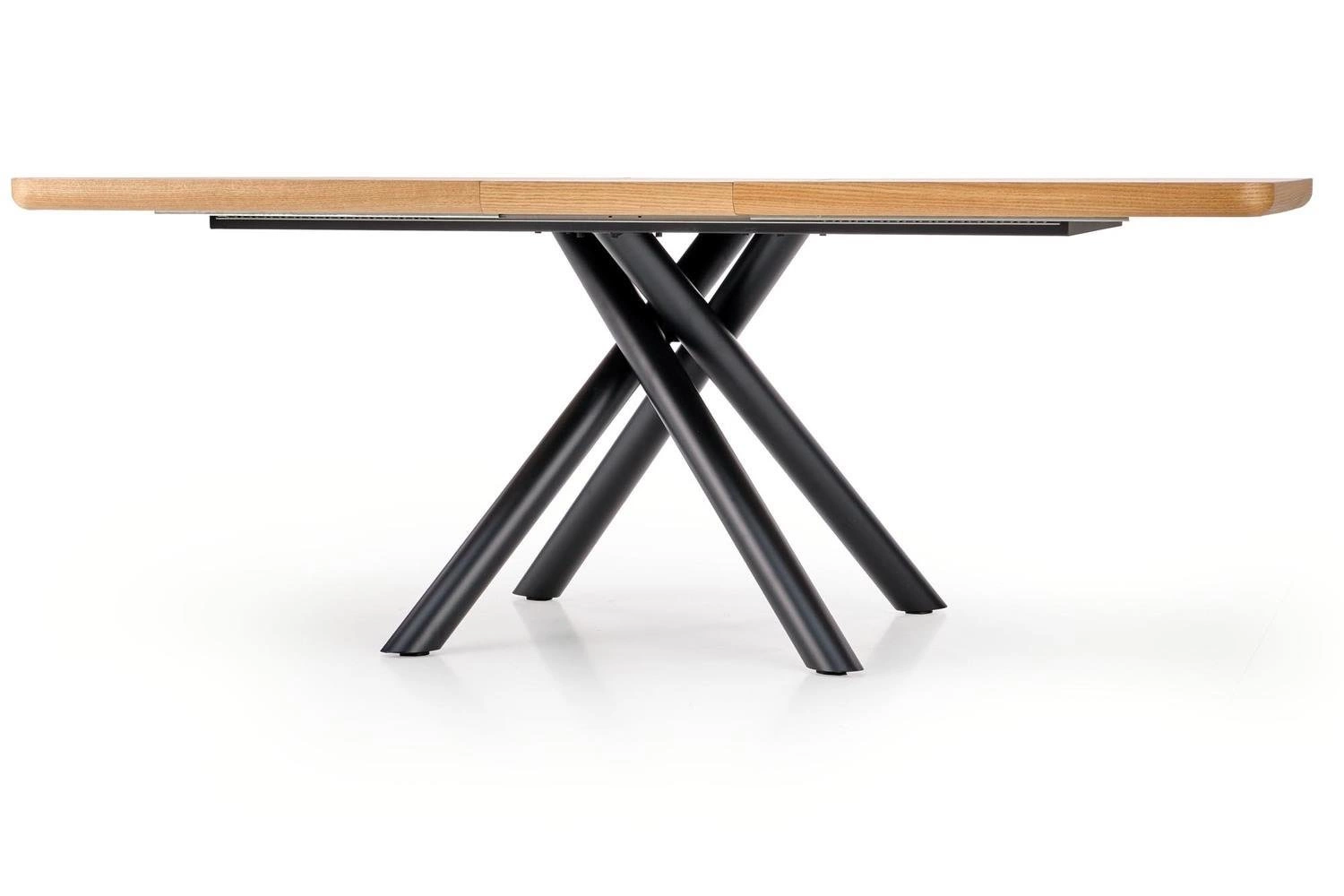 Ten nowoczesny stół to idealne rozwiązanie dla osób, które cenią sobie funkcjonalność i stylowe wykończenie wnętrza. Dzięki rozkładanej konstrukcji, stół może pomieścić nawet 8 osób, co czyni go idealnym miejscem do rodzinnych spotkań i przyjęć. Wykonany z wysokiej jakości MDF i okleiny naturalnej, blat stołu w kolorze dębu naturalnego zachwyca swoim pięknym wykończeniem, które dodaje wnętrzu przytulnego i eleganckiego charakteru.