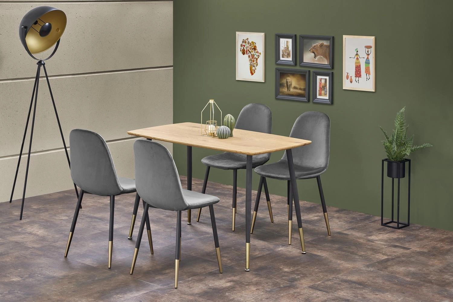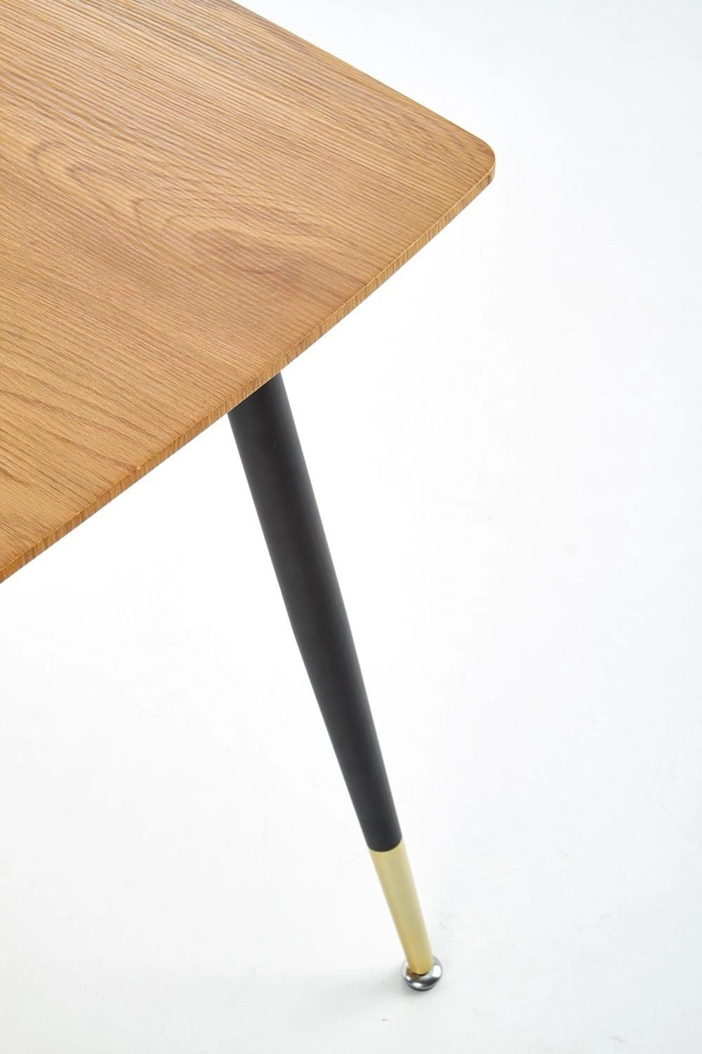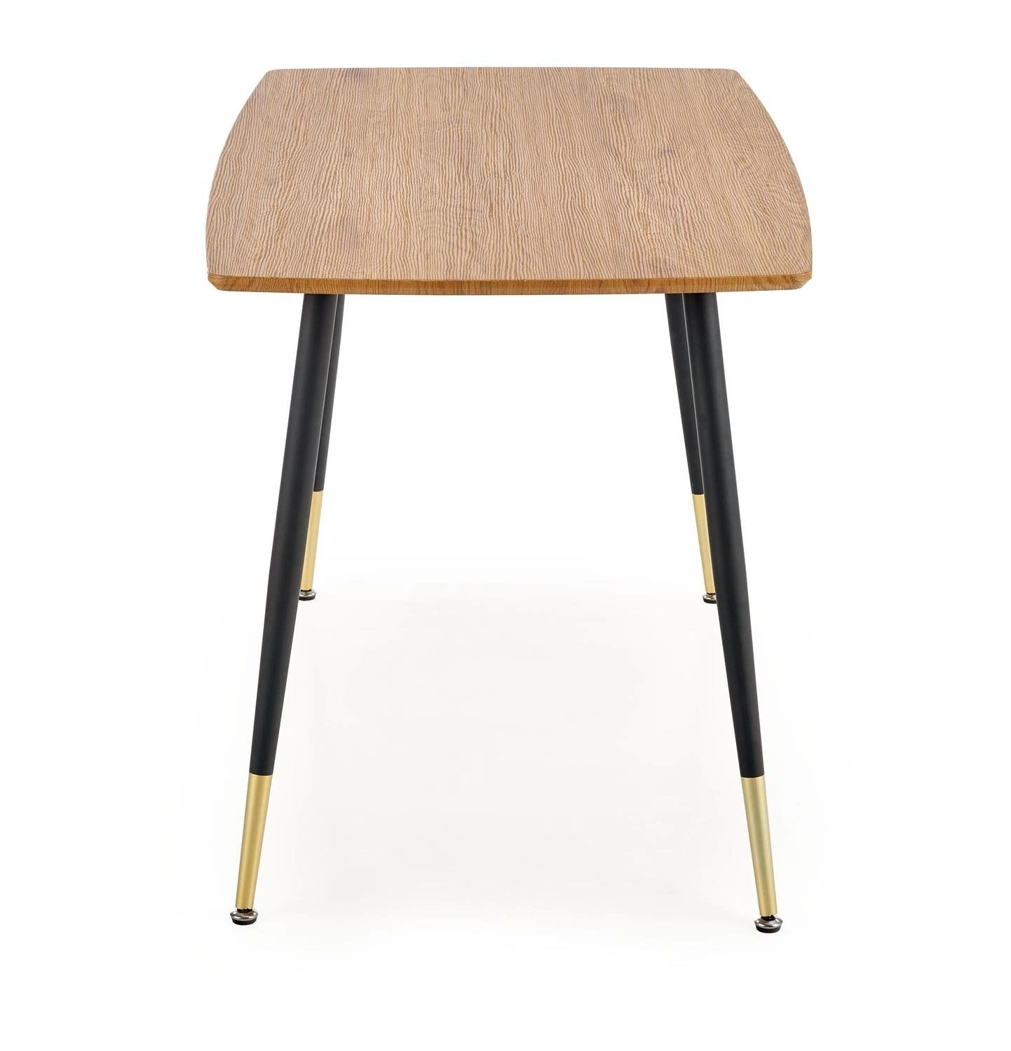 Ten nowoczesny stół to idealne rozwiązanie dla każdego, kto ceni sobie funkcjonalność, styl i wygodę. Wykonany z wysokiej jakości materiałów, zapewnia trwałość i niezawodność na lata. Blat stołu wykonany jest z MDF-u okleinowanego, co nadaje mu elegancki wygląd, a jednocześnie zapewnia łatwość w utrzymaniu czystości. Dostępny w kolorze dębu złotego, który wprowadzi do Twojego wnętrza ciepłą i przytulną atmosferę.