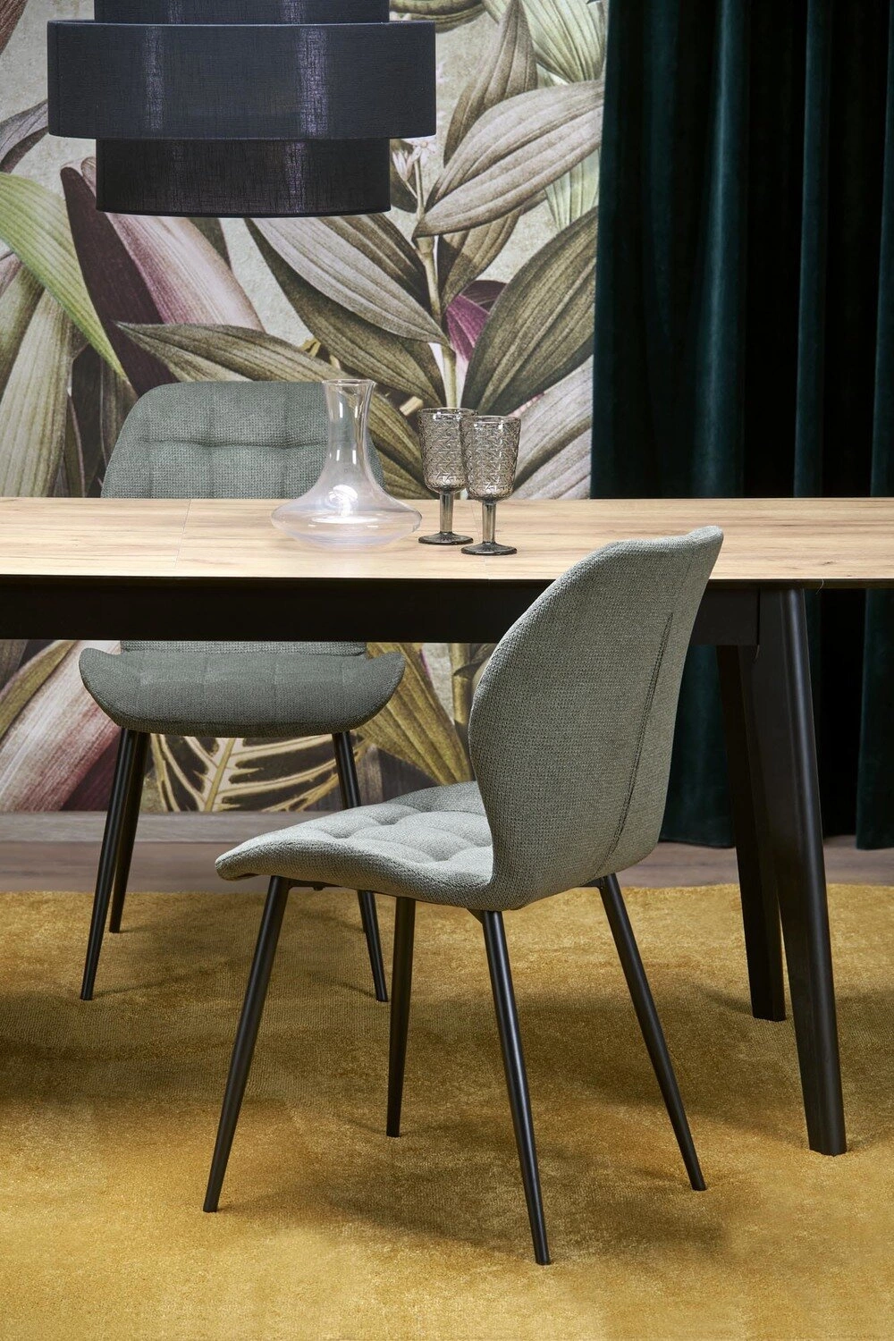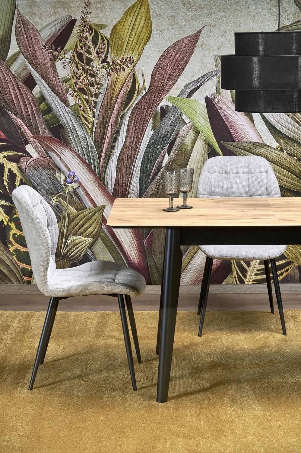 Rozkładany stół Ambyl w kolorze dąb wotan i czarnym to idealne połączenie elegancji i funkcjonalności. Blat wykonany z laminowanej płyty MDF w ciepłym odcieniu dębu wotan emanuje naturalnym urokiem i trwałością, co sprawia, że stół ten doskonale wpasuje się w każdą aranżację wnętrza. Czarne, solidne nogi z litego drewna nie tylko zapewniają stabilność, ale również dodają wyrafinowanego charakteru, podkreślając nowoczesny styl stołu.