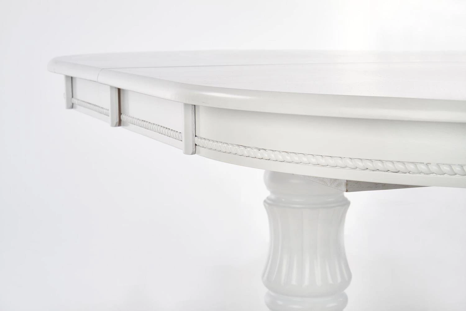 Ten piękny, klasyczny stół to idealne rozwiązanie dla rodzin i gości, którzy cenią sobie elegancję i wygodę. Dzięki swojemu rozkładanemu blatu stół może pomieścić zarówno 6, jak i 8 osób, co czyni go idealnym wyborem na każdą okazję. Blat stołu wykonany jest z lakierowanego MDF-u, co zapewnia trwałość i łatwość w utrzymaniu czystości.