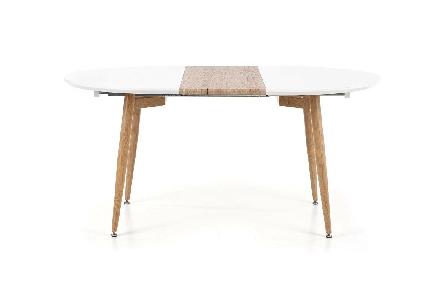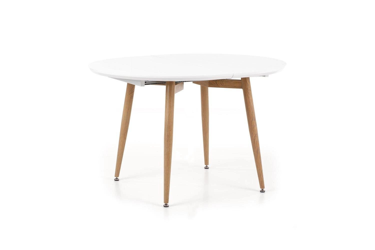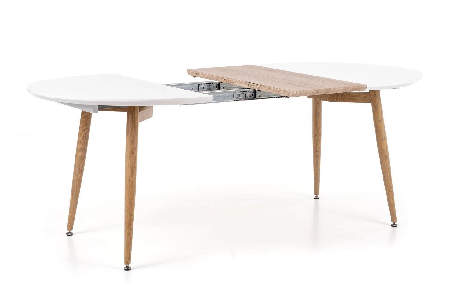 Ten rozkładany stół może pomieścić 8 lub 4 osoby po złożeniu, dzięki czemu możesz dostosować jego rozmiar do potrzeb i ilości gości. Blat stołu może mieć kształt owalny lub okrągły, a jego materiał może być MDF okleinowany lub MDF lakierowany. Jedną z największych zalet tego stołu jest jego funkcjonalność.