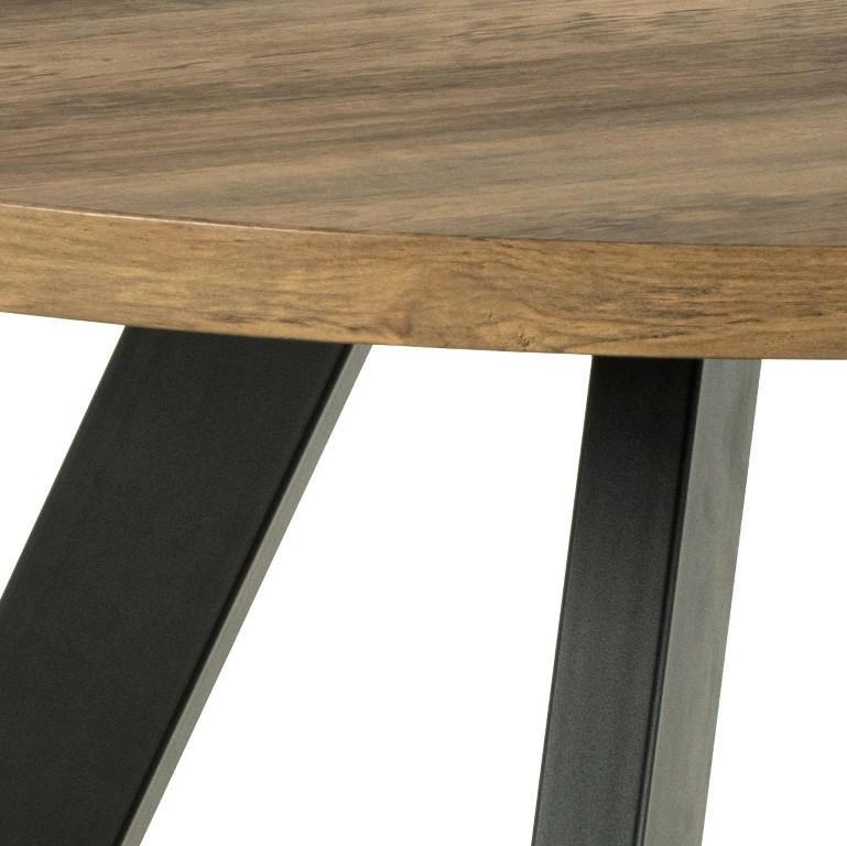 - Na niej znajduje się okrągły blat pokryty okleiną w kolorze dębu.
