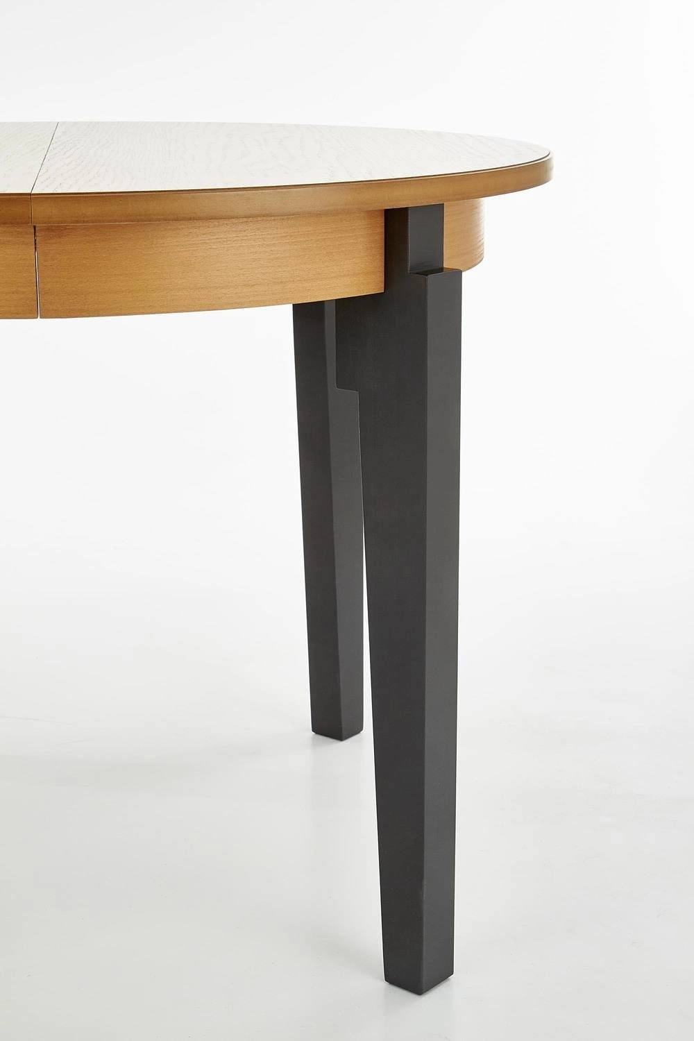 Blat mebla wykonany jest z wysokiej jakości płyty MDF pokrytej naturalną okleiną. Wariant kolorystyczny dębowego miodu dodaje meblowi elegancji i uniwersalności, pasując do różnych aranżacji wnętrz. Nogi stołu w kolorze czarnym wykonane są z litego drewna bukowego, które nie tylko zapewnia stabilność, ale również dodaje naturalnego uroku. Baros to mebel, który nie tylko zachwyca wyglądem, ale również gwarantuje trwałość i łatwość utrzymania w czystości. Materiały, z których został wykonany, są odporne na uszkodzenia i zapewniają długotrwałe użytkowanie. Wybierz Baros i ciesz się pięknym, trwałym stołem, który wprowadzi nowoczesny akcent do Twojej przestrzeni.