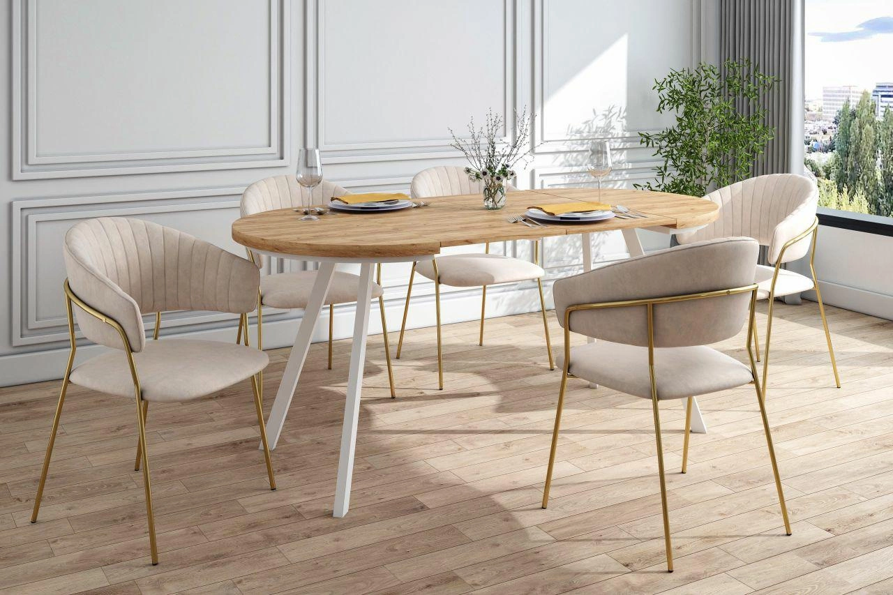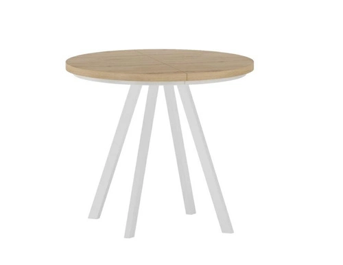 Okrągły, rozkładany stół. Dodatkowe wkładki nie chowają się w stole.