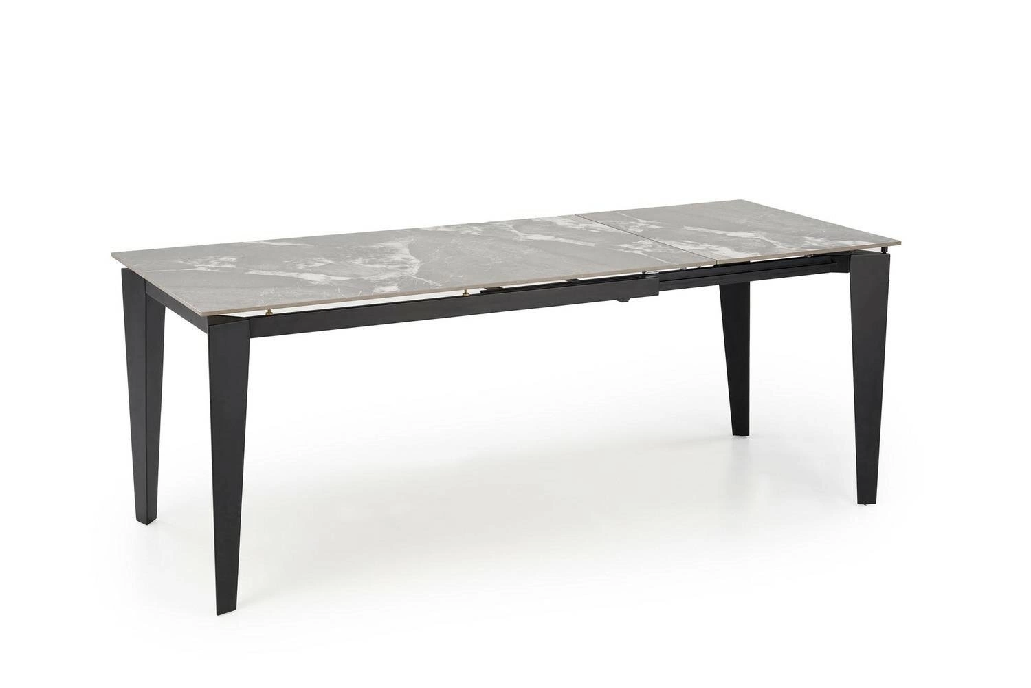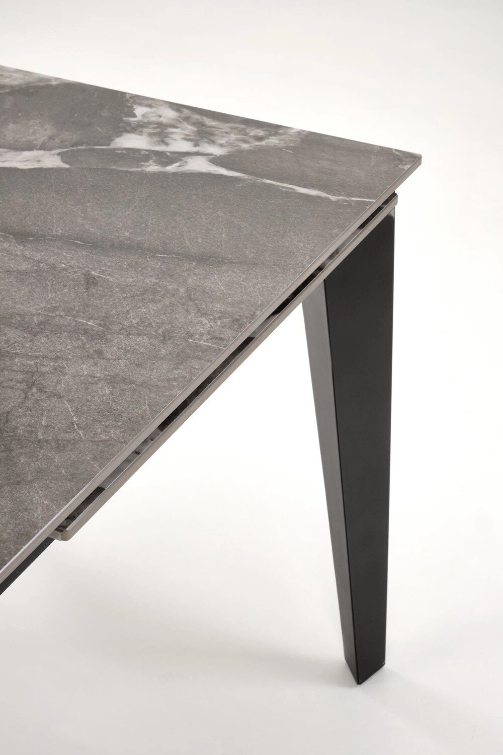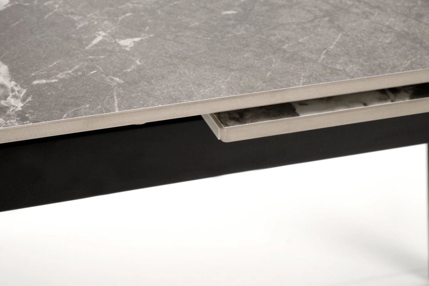 Stół rozkładany Asniki to doskonały wybór dla miłośników nowoczesnego designu połączonego z funkcjonalnością. Jego elegancki wygląd przyciąga wzrok, a solidna konstrukcja zapewnia stabilność i wytrzymałość na lata. Cztery czarne, stalowe nogi nadają mu wyjątkowego charakteru, harmonijnie komponując się z popielatym, marmurowym blatem. Blat ze spieku, imitujący wzorzysty popielaty marmur, dodaje stołu prestiżu i luksusu, dzięki czemu staje się on centralnym punktem każdego wnętrza.