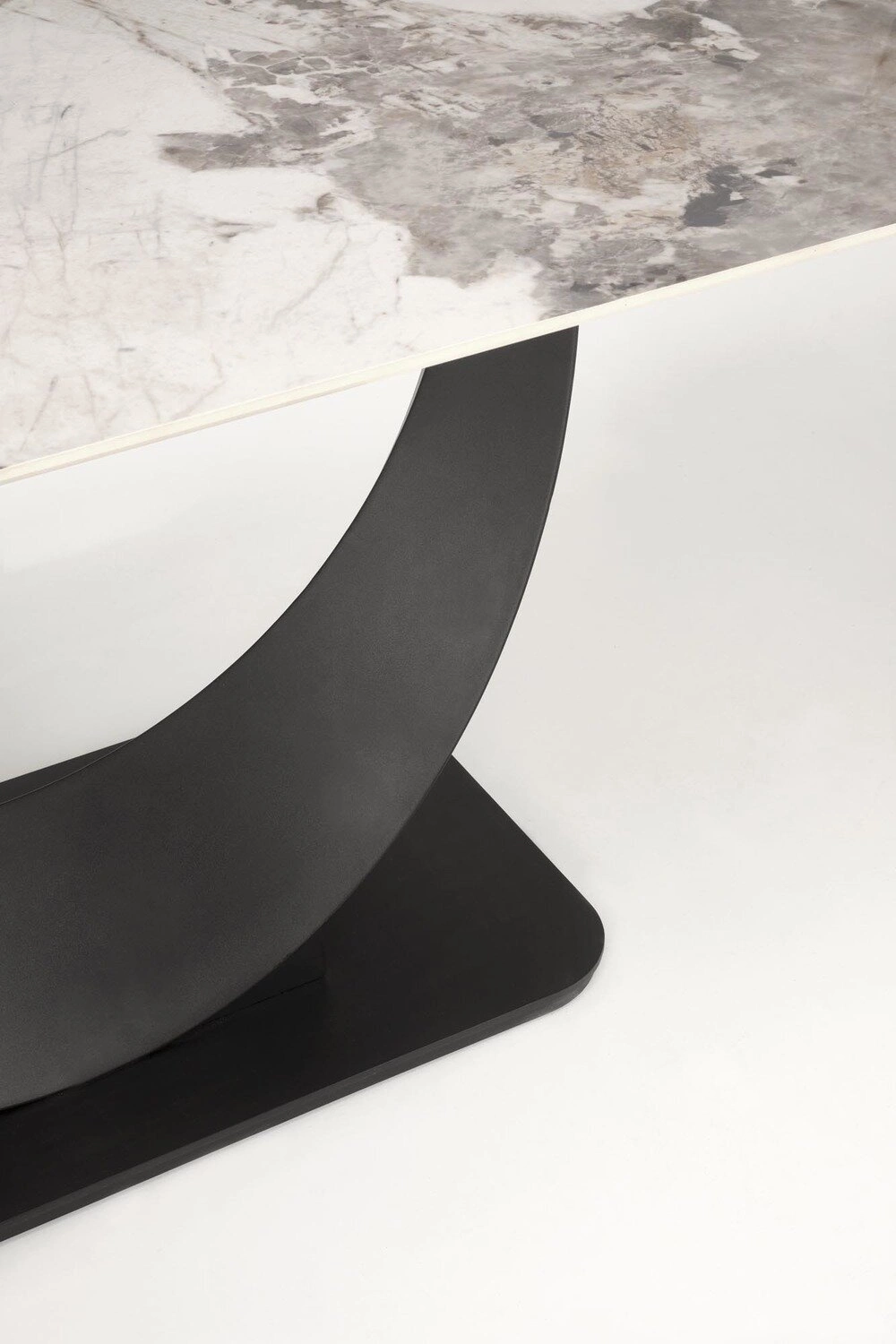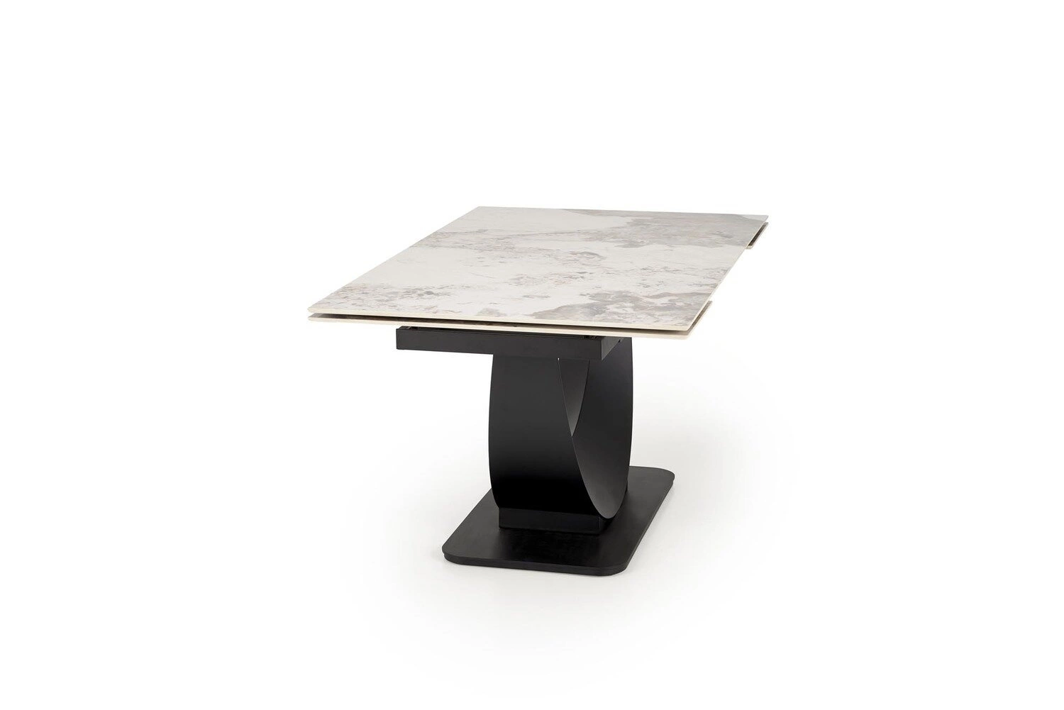 - Blat imitujący biały marmur i czarna, stalowa noga nadają stołowi elegancki i nowoczesny wygląd, który świetnie wpisuje się w różne style wnętrz