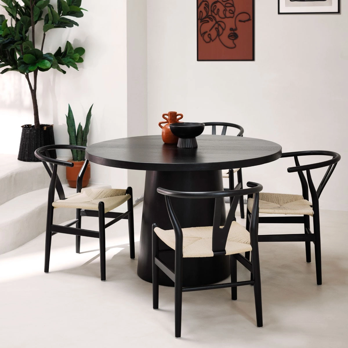 Stół Boki to nie tylko praktyczny mebel, ale także wyjątkowy element dekoracyjny. Jego okrągły kształt oraz czarna barwa tworzą harmonijną całość, która doda charakteru każdemu wnętrzu. Dzięki zastosowaniu drewna mango, stół jest niezwykle trwały i odporny na uszkodzenia. Boki to stół, który zachwyci Cię nie tylko swoim wyglądem, ale także funkcjonalnością.