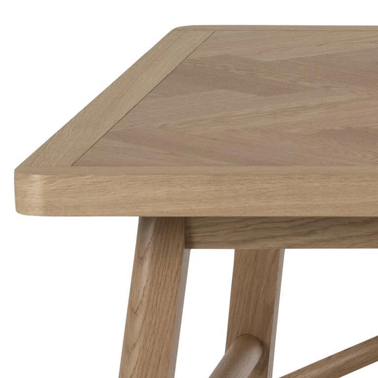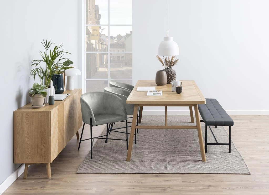Stół Galway doskonale łączy ponadczasowy charakter drewna z nowoczesnym, minimalistycznym designem. Wyrazisty rysunek dębu rustykalnego wprowadza do wnętrza ciepło i autentyczność, a proste linie i brak zbędnych zdobień podkreślają lekkość formy. To propozycja dla osób, które szukają stołu do jadalni łączącego naturalne piękno z aktualnymi trendami aranżacyjnymi. Blat o głębokości 100 cm pozwala na swobodne ustawienie zastawy, dekoracji czy dodatków, nie ograniczając przestrzeni wokół stołu.