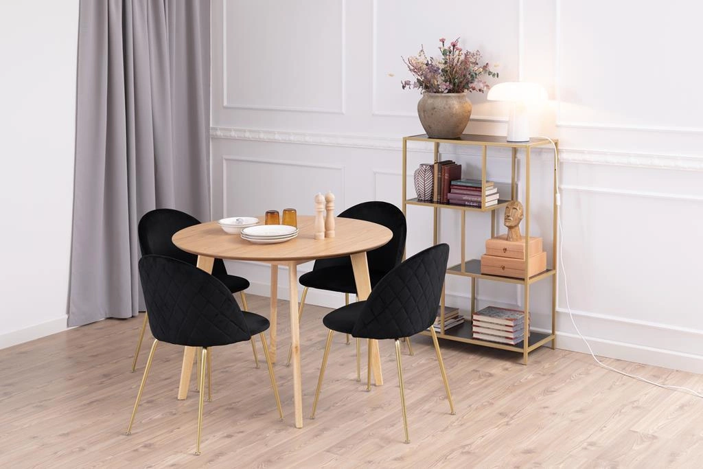 Roxby to blat fornirowany lakierowanym drewnem dębowym zachowany w naturalnej kolorystyce o wykończeniu półmatowym. Podstawę stanowią cztery wąskie nogi wykonane z lakierowanego drewna kauczukowego. Stół wymaga montażu, jego waga wynosi 20kg. Max. ilość sztuk w opakowaniu: 1 Wymiary kartonu: 113cm x 11,5 cm x 112cm