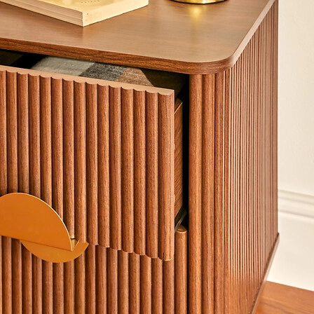 Szafka nocna Atmosphera Wany 45 cm orzechowa, 2 szuflady, styl japandi/boho, eleganckie frezowane fronty