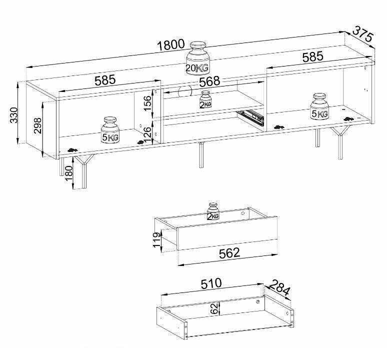 Szafka RTV została wykonana z materiałów najwyższej jakości. Płyta MDF pokryta czarną półmatową okleiną, charakteryzuje się idealną gładkością i jest odporna na wilgoć, zarysowania i wysokie temperatury. Tak samo jak metalowe nogi odpowiednio zabezpieczone przed odpryskiem farby spowodowanym, np. pracą robota sprzątającego. Szafka RTV wykonana jest precyzyjnie zgodnie z najwyższymi standardami, by służyć Ci przez lata! Wszystkie elementy są starannie dopasowane, aby zagwarantować trwałość i bezproblemową eksploatację mebla.