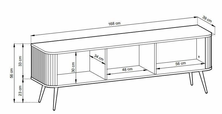- Trzy fronty oferują mnóstwo miejsca do przechowywania akcesoriów multimedialnych, utrzymując porządek i organizację w salonie
