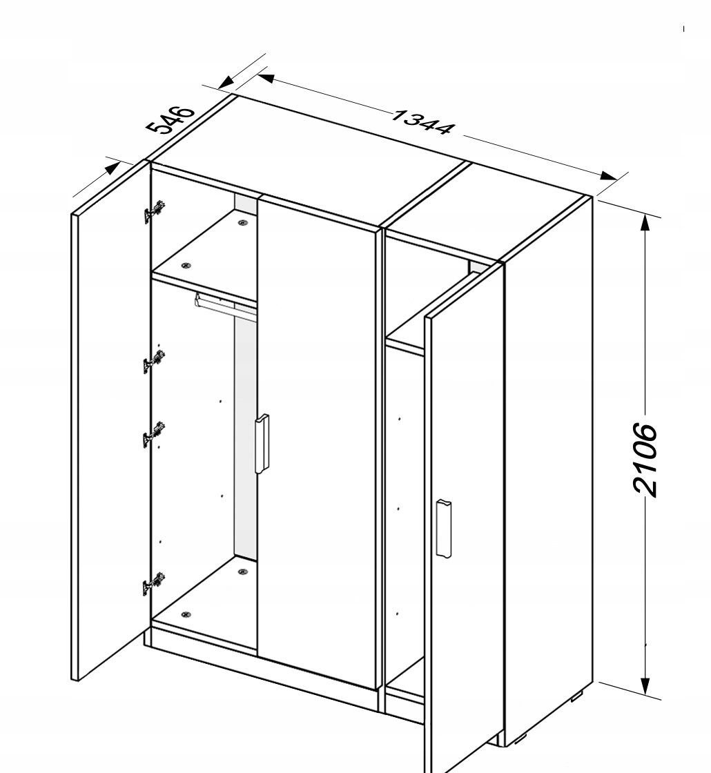 - 3-drzwiowa konstrukcja – wygodny dostęp i szybka organizacja garderoby