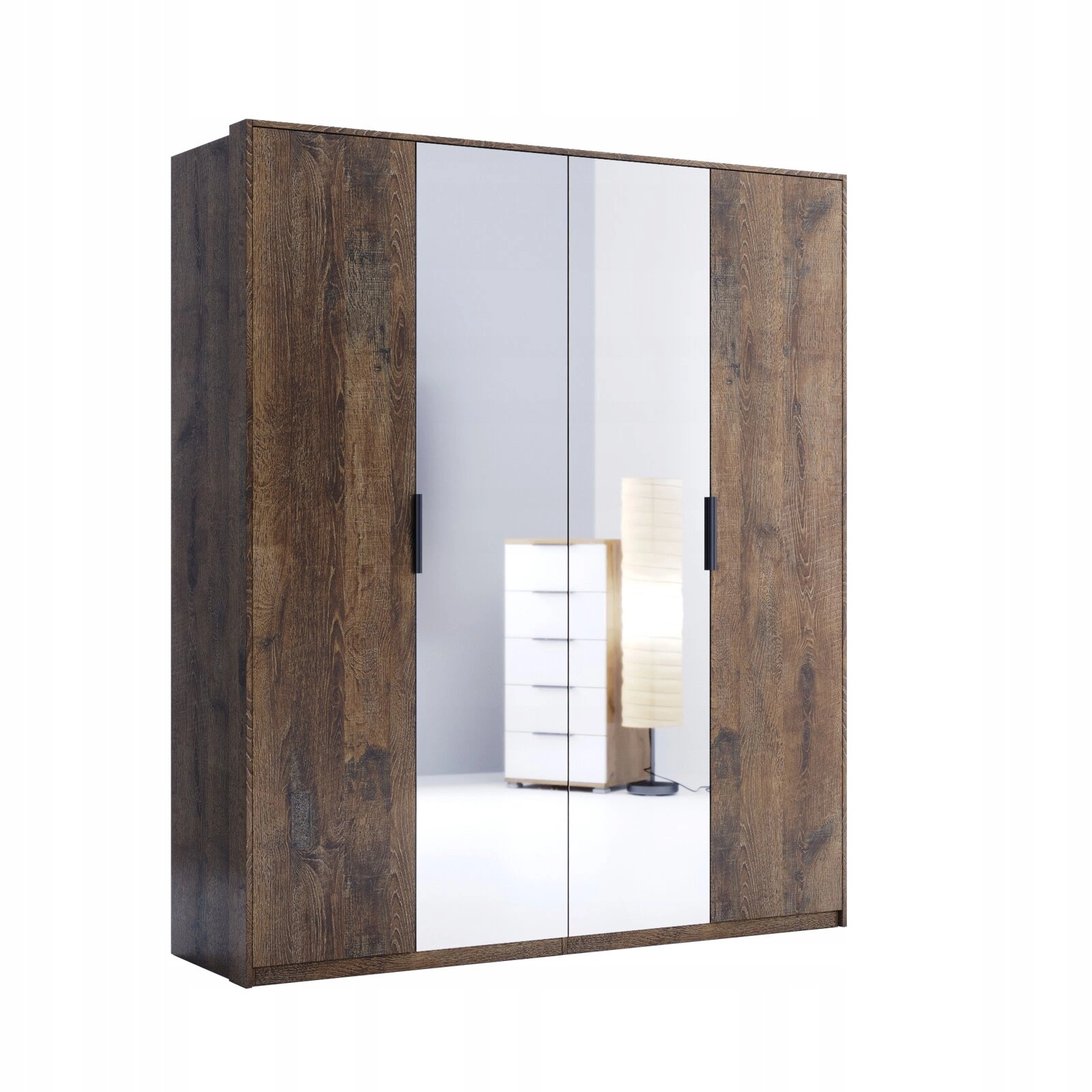 Szafa Anciano to czterodrzwiowy mebel z lustrem w eleganckim brązowym wykończeniu, zaprojektowany z myślą o nowoczesnych sypialniach i garderobach. Wysoka na 212 cm i szeroka na 182,5 cm, oferuje przestronne wnętrze z praktycznymi półkami oraz drążkiem na ubrania. Fronty o gładkiej powierzchni, połyskujące wykończenie oraz funkcja cichego domyku gwarantują codzienną wygodę i subtelny luksus w Twoim domu.