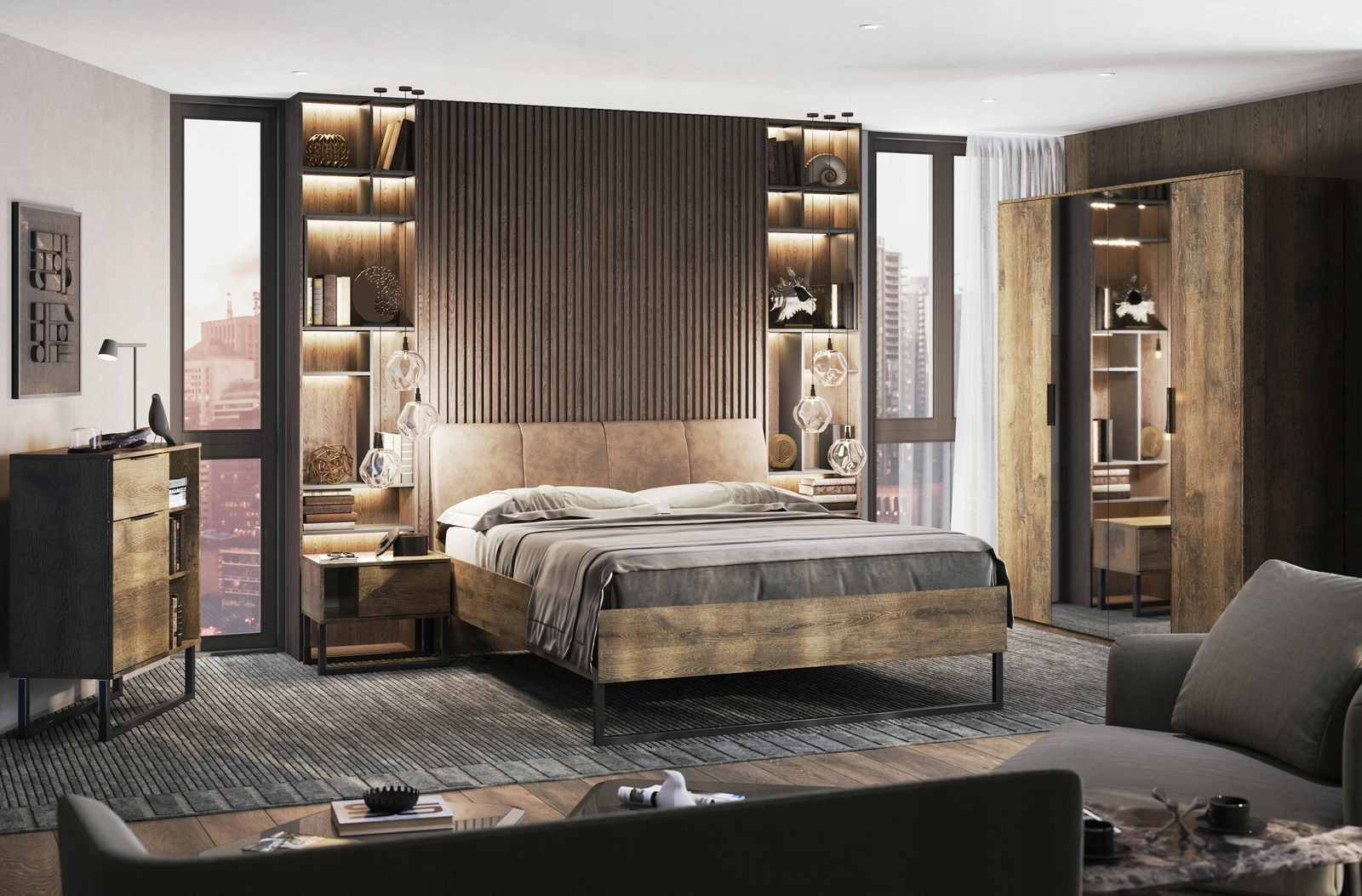 Szafa Anciano doskonale wpisuje się w estetykę nowoczesnych oraz skandynawskich wnętrz, łącząc proste linie z funkcjonalnością. Brązowy kolor frontów sprawia, że mebel jest ponadczasowy, a subtelny połysk odbija światło, rozjaśniając pomieszczenie. Lustro na jednym z frontów optycznie powiększa przestrzeń i ułatwia codzienne przygotowania – to idealny wybór do sypialni, garderoby lub pokoju młodzieżowego.