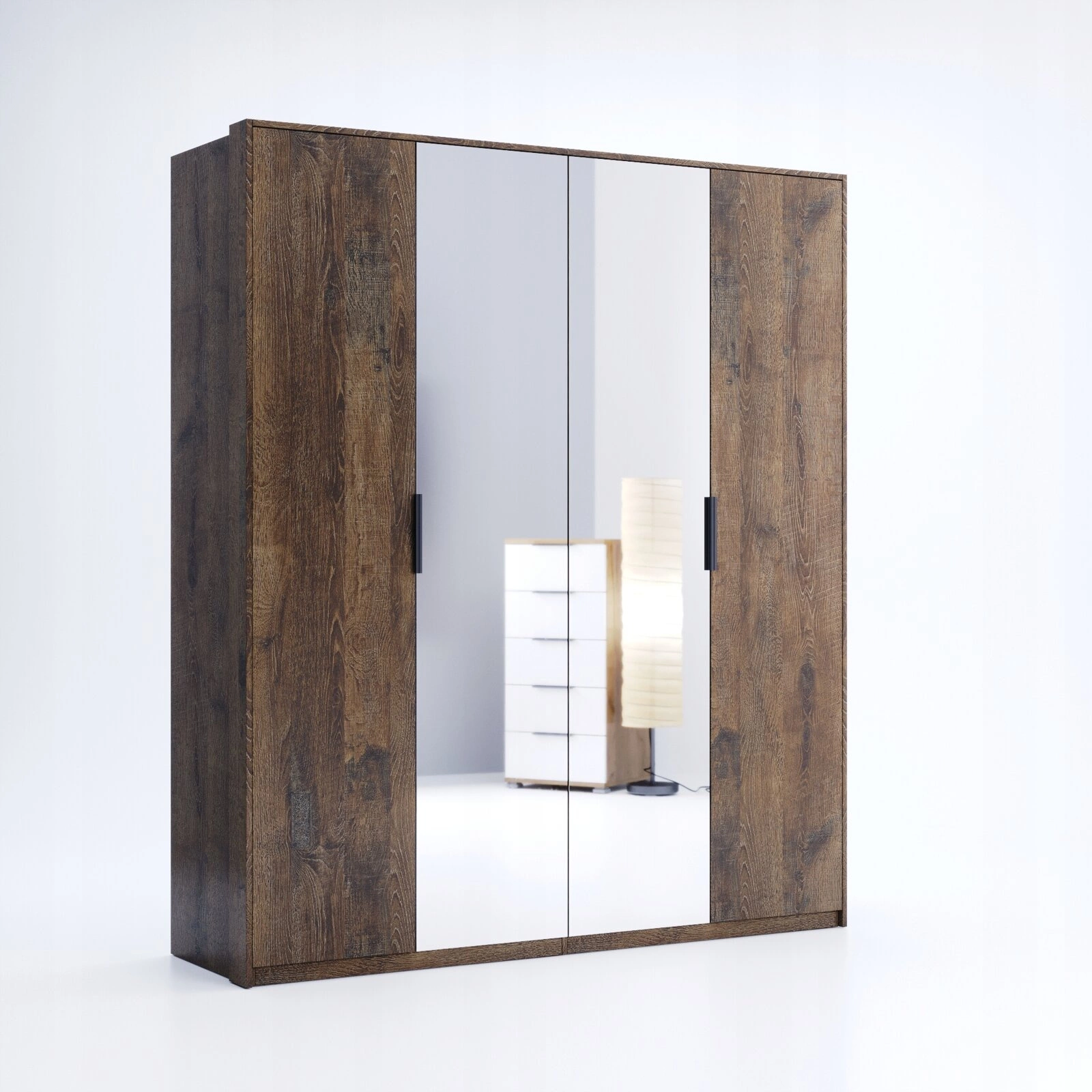 Szafa 4-drzwiowa Anciano została wykonana z wytrzymałej płyty meblowej, dzięki czemu jest odporna na codzienne użytkowanie i łatwa do utrzymania w czystości. Cichy domyk zapobiega trzaskaniu drzwi, zapewniając komfort także podczas porannego szykowania się. To rozwiązanie, które sprawdzi się zarówno w przestronnej garderobie, jak i w sypialni wymagającej praktycznych, eleganckich rozwiązań.