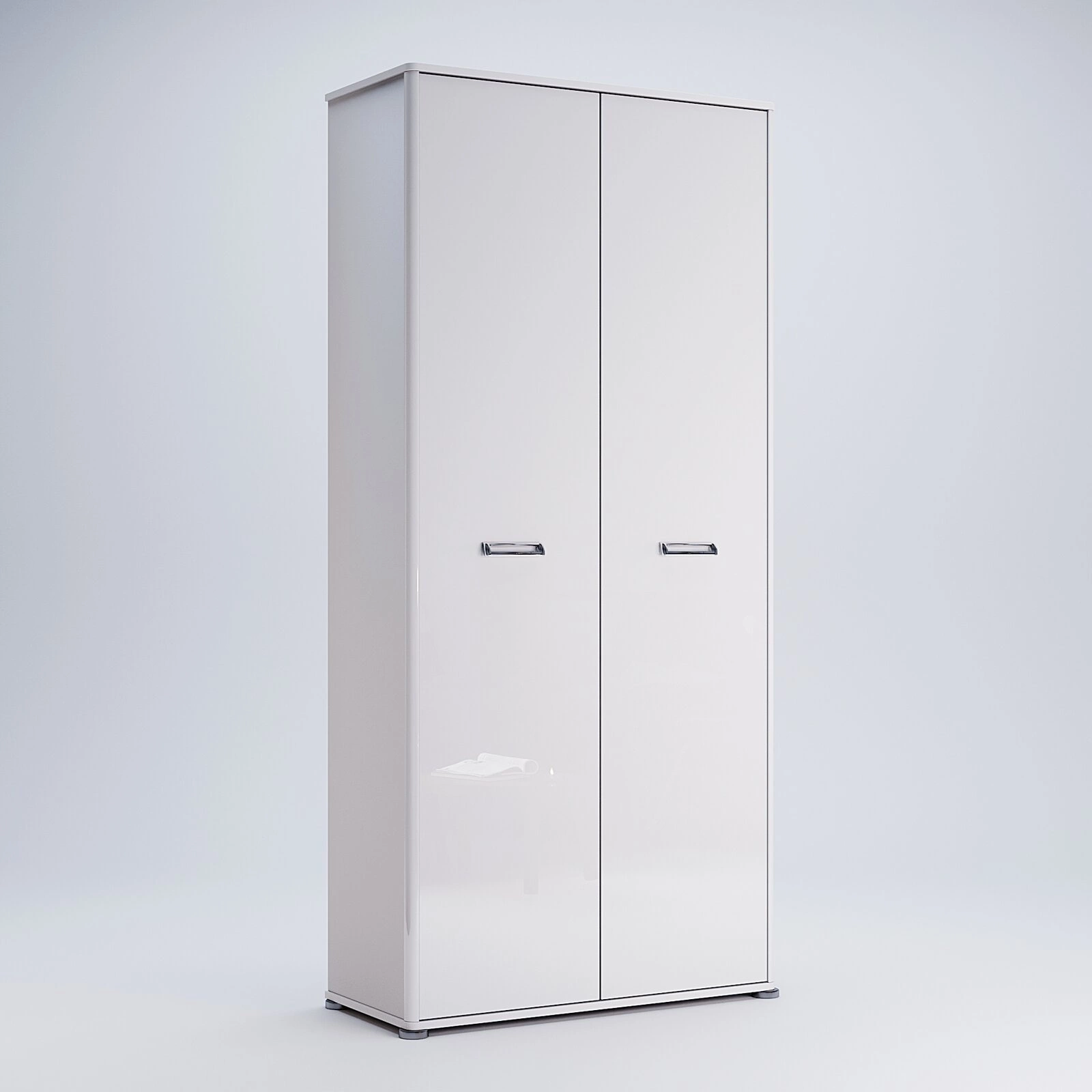 Szafa Bella to biała, 2-drzwiowa szafa z połyskiem i drążkiem na ubrania oraz praktycznymi półkami, o głębokości 40 cm. Jej nowoczesny charakter podkreślają gładkie fronty i subtelny połysk, a kompaktowe wymiary (195×90×40 cm) sprawiają, że doskonale sprawdzi się w sypialni, garderobie lub pokoju młodzieżowym. To rozwiązanie dla osób ceniących funkcjonalność oraz estetykę w skandynawskim stylu.