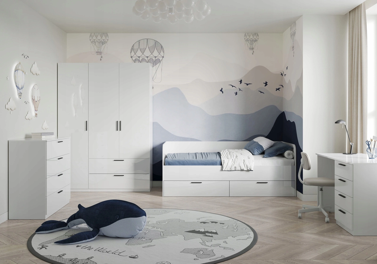Szafa Holly wyróżnia się nowoczesnym, skandynawskim designem, który doskonale wpisuje się w modne, jasne aranżacje. Jej gładkie, błyszczące fronty odbijają światło, optycznie powiększając pomieszczenie, co sprawia, że nawet mały przedpokój czy sypialnia stają się bardziej przestronne. Dzięki swojej formie i uniwersalnemu kolorowi, szafa świetnie odnajdzie się zarówno w minimalistycznych, jak i klasycznych wnętrzach, wprowadzając świeżość i harmonię.