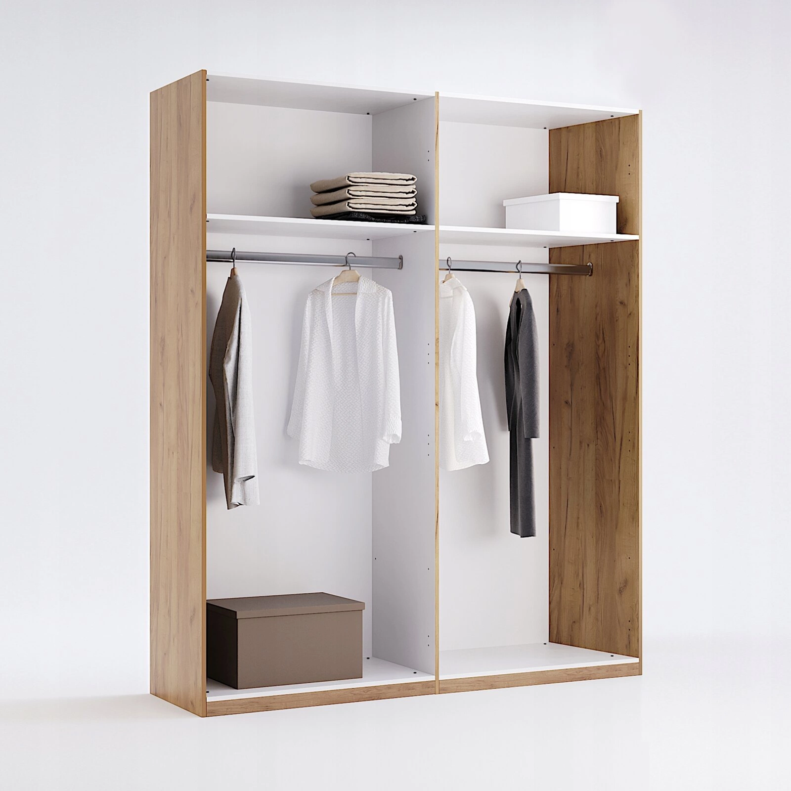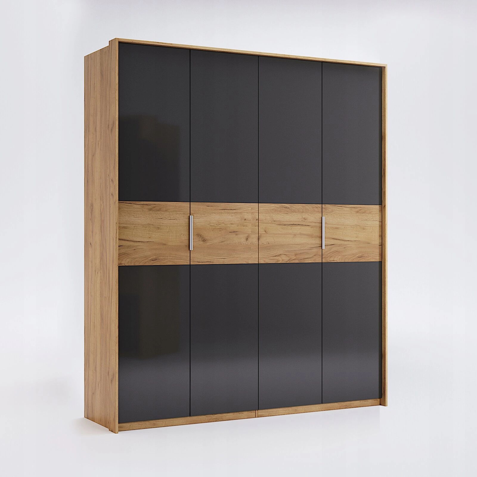 Pojemne wnętrze szafy z czterema drzwiami oraz praktycznymi półkami pozwala wygodnie segregować ubrania, pościel czy akcesoria sezonowe. To idealne rozwiązanie dla osób ceniących funkcjonalność i dobrą organizację przestrzeni. Zastosowana głębokość 58 cm sprawia, że szafa sprawdzi się zarówno jako szafa do sypialni, jak i pojemna szafa do garderoby – pomieści nie tylko ubrania na wieszakach, ale także liczne półki na swetry, koszulki czy pudełka z dodatkami.