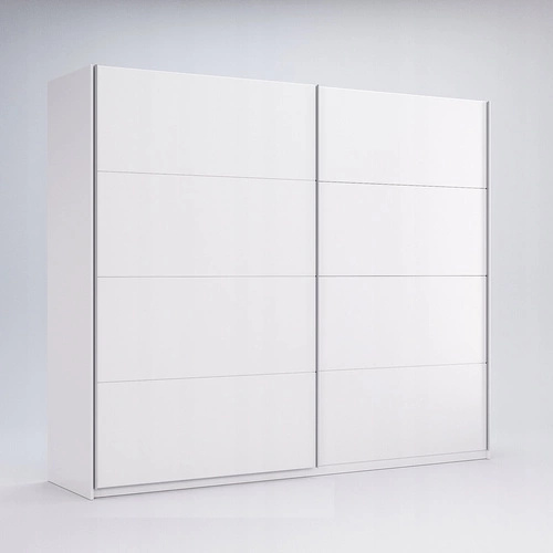 Szafa przesuwna Flory 250 cm to nowoczesny mebel o imponującej szerokości, wykończony w eleganckim białym połysku. Idealnie sprawdzi się w sypialni, garderobie lub pokoju młodzieżowym, zapewniając dużo miejsca na ubrania dzięki praktycznym półkom oraz drążkowi na wieszaki. Gładkie fronty i mechanizm przesuwny renomowanej marki HETTICH gwarantują nie tylko stylowy wygląd, ale i codzienną wygodę użytkowania.